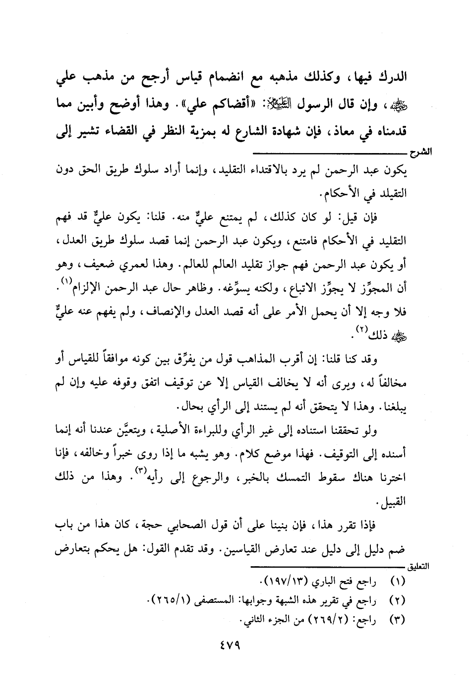 فإن قيل: لو كان كذلك، لم يمتنع عليٌّ منه. قلنا: يكون عليٌّ قد فهم التقليد في الأحكام فامتنع، ويكون عبد الرحمن إنما قصد سلوك طريق العدل، أو يكون عبد الرحمن فهم جواز تقليد العالم للعالم. وهذا لعمري ضعيف، وهو أن المجوِّز لا يجوِّز الاتباع، ولكنه يسوِّغه. وظاهر حال عبد الرحمن الإلزام. فلا وجه إلا أن يحمل الأمر على أنه قصد العدل والإنصاف، ولم يفهم عنه عليٌّ - رضي الله عنه - ذلك.