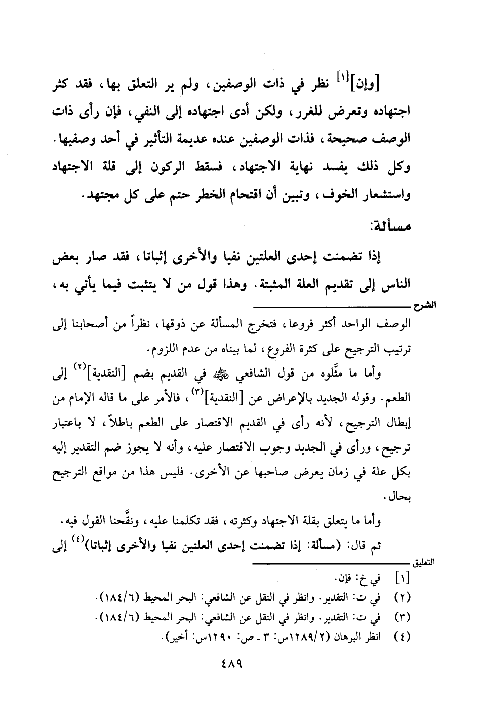 وأما ما مثَّلوه من قول الشافعي - رضي الله عنه - في القديم بضم [النقدية] إلى الطعم. وقوله الجديد بالإعراض عن [النقدية]، فالأمر على ما قاله الإمام من إبطال الترجيح، لأنه رأى في القديم الاقتصار على الطعم باطلًا، لا باعتبار ترجيح، ورأى في الجديد وجوب الاقتصار عليه، وأنه لا يجوز ضم التقدير إليه بكل علة في زمان يعرض صاحبها عن الأخرى. فليس هذا من مواقع الترجيح بحال.