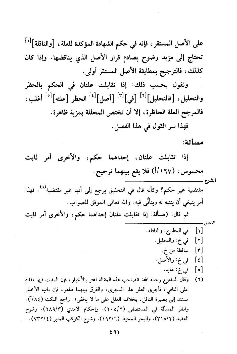 ثم قال: (مسألة: إذا تقابلت علتان إحداهما حكم، والأخرى أمر ثابت