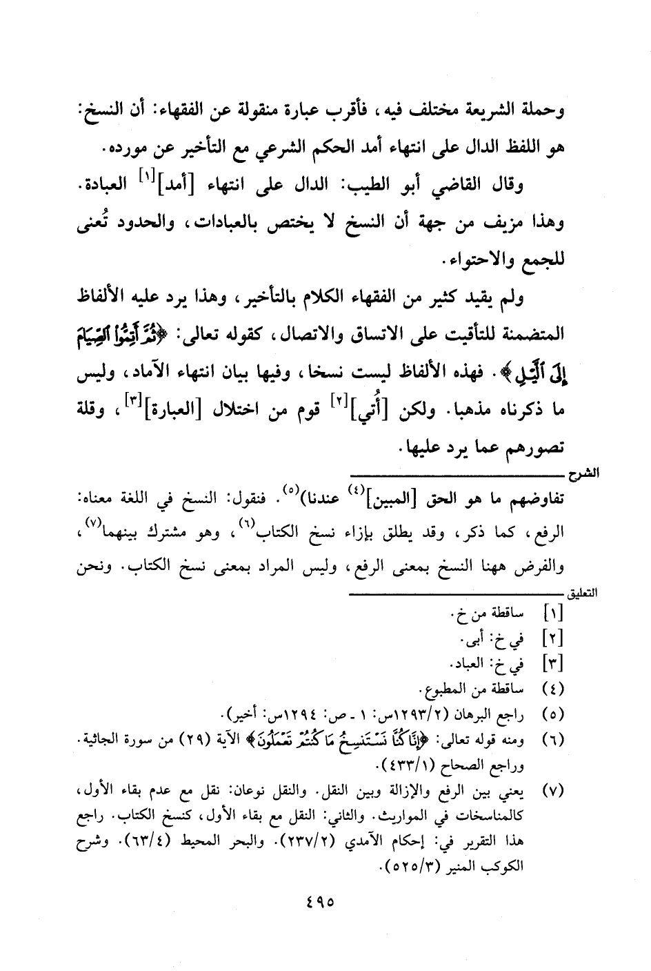 تفاوضهم ما هو الحق [المبين] عندنا). فنقول: النسخ في اللغة معناه: الرفع، كما ذكر، وقد يطلق بإزاء نسخ الكتاب، وهو مشترك بيتهما، والفرض ها هنا النسخ بمعنى الرفع، وليس المراد بمعنى نسخ الكتاب. ونحن