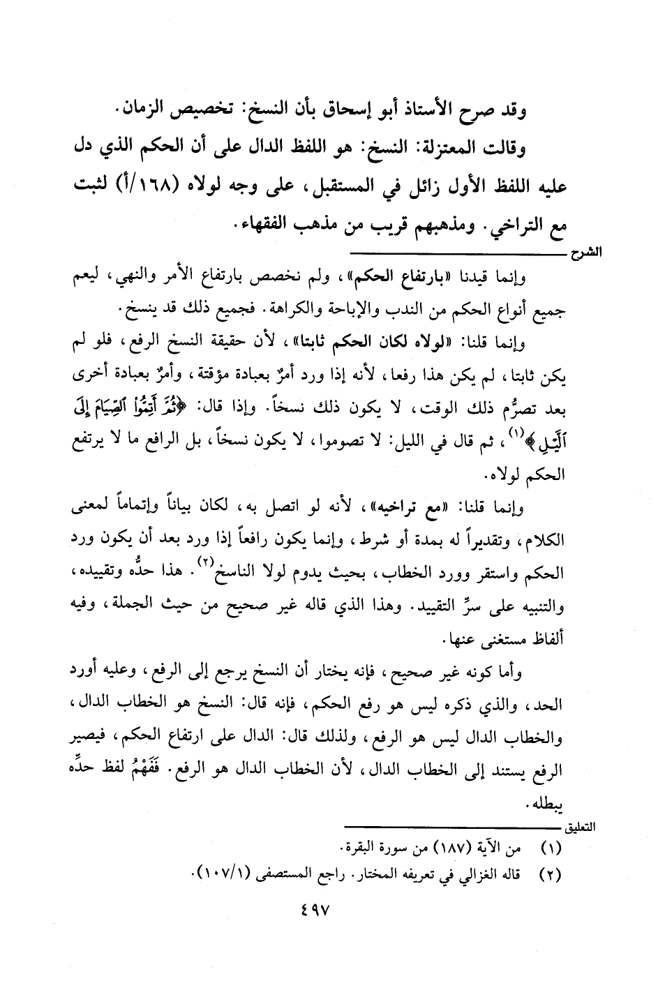 وإنما قلنا: «لولاه لكان الحكم ثابتًا»، لأن حقيقة النسخ الرفع، فلو لم يكن ثابتًا، لم يكن هذا رفعًا، لأنه إذا ورد أمرٌ بعبادة مؤقتة، وأمرٌ بعبادة أخرى بعد تصرُّم ذلك الوقت، لا يكون ذلك نسخًا. وإذا قال: {ثم أتموا الصيام إلى الليل}، ثم قال في الليل: لا تصوموا، لا يكون ذلك نسخًا، بل الرافع ما لا يرتفع الحكم لولاه.