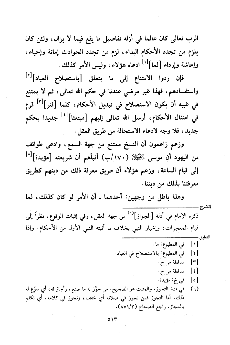 ذكره الإمام في أدلة [الجواز] من جهة العقل، وفي إثبات الوقوع، نظرًا إلى قيام المعجزات، وإخبار النبي بخلاف ما أثبته النبي الأول من الأحكام. وإذا