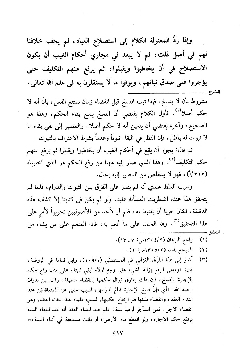 وسبب الغلط عندي أنه لم يقدر على الفرق بين الثبوت والدوام، فلما لم يتحقق هذا عنده اضطربت المسألة عليه. ولو لم يكن في كتابنا إلا كشف هذه الدقيقة، لكان حريًّا أن يغتبط به، فلم أرَ لأحدٍ من الأصوليين تحريرًا لأمرٍ على هذا التحقيق. ولله الحمد على ما أنعم به، فإنه المنعم على من يشاء من