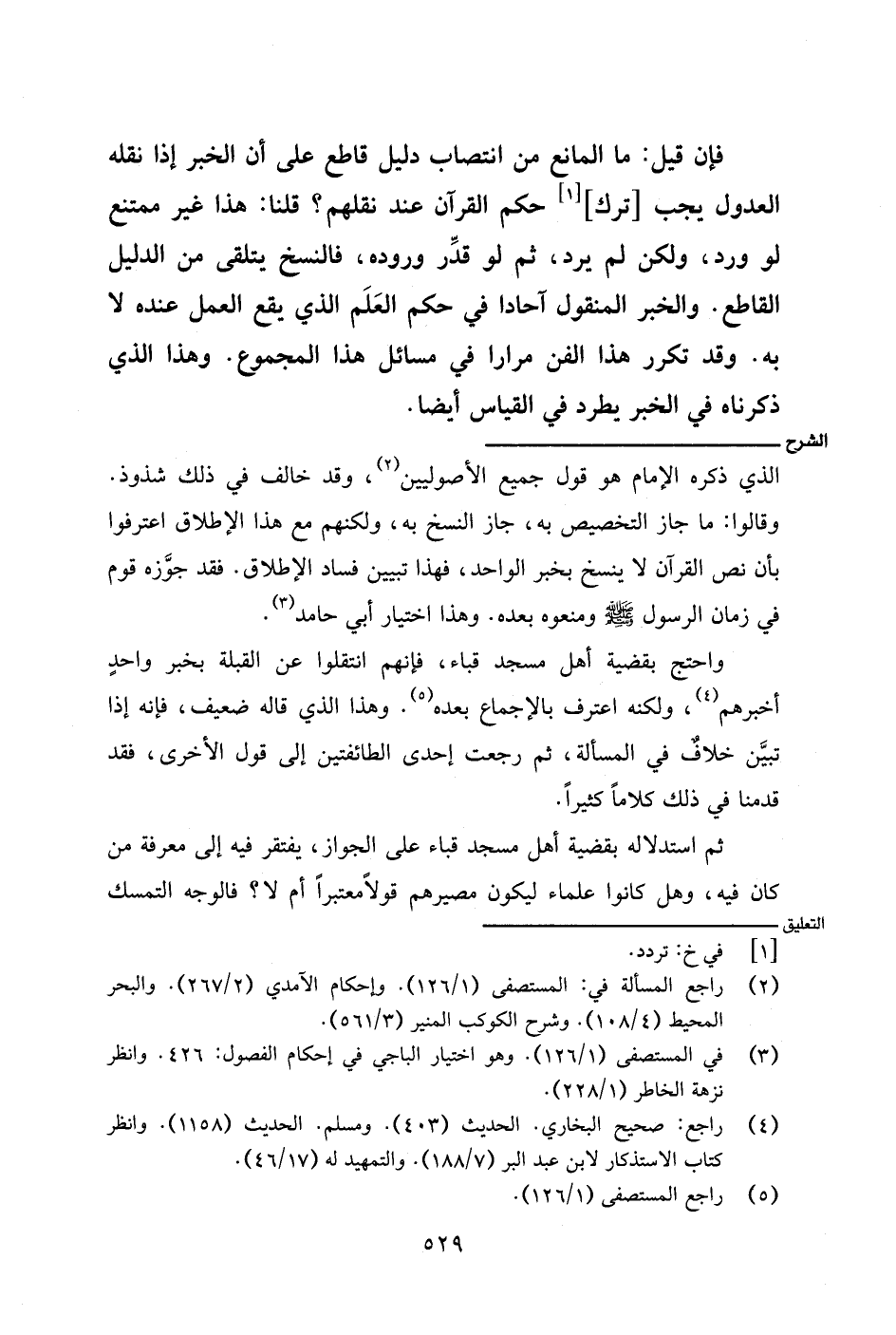 ثم استدلاله بقضية أهل مسجد قباء على الجواز، يفتقر فيه إلى معرفة من كان فيه، وهل كانوا علماء ليكون مصيرهم قولًا معتبرًا أم لا؟ فالوجه التمسك