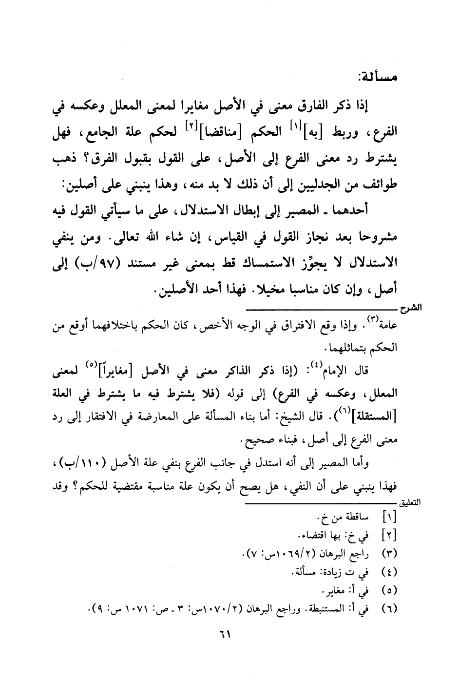 قال الإمام: (إذا ذكر الذاكر معنى في الأصل [مغايرًا] لمعنى المعلل، وعكسه في الفرع) إلى قوله (فلا يشترط فيه ما يشترط في العلة [المستقلة]). قال الشيخ: أما بناء المسألة على المعارضة في الافتقار إلى رد معنى الفرع إلى أصل، فبناء صحيح.