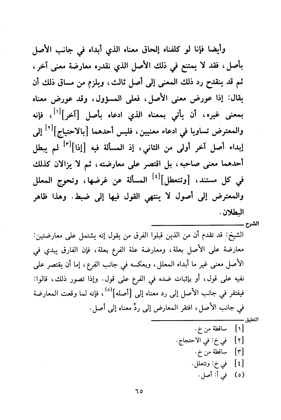 الشيخ: قد تقدم أن من الذين قبلوا الفرق من يقول إنه يشتمل على معارضتين: معارضة على الأصل بعلة، ومعارضة علة الفرع بعلة، فغن الفارق يبدي في الأصل معنى غير ما أبداه المعلل، وبعكسه في جانب الفرع، إما أن يقتصر على نفيه على قول، أو بإثبات ضده في الفرع على قول. وإذا تصور ذلك، قالوا: فيفتقر في جانب الأصل إلى رد معناه إلى [أصله]، فإنه لما وقعت المعارضة في جانب الأصل، افتقر المعارض إلى رد معناه إلى أصل.
