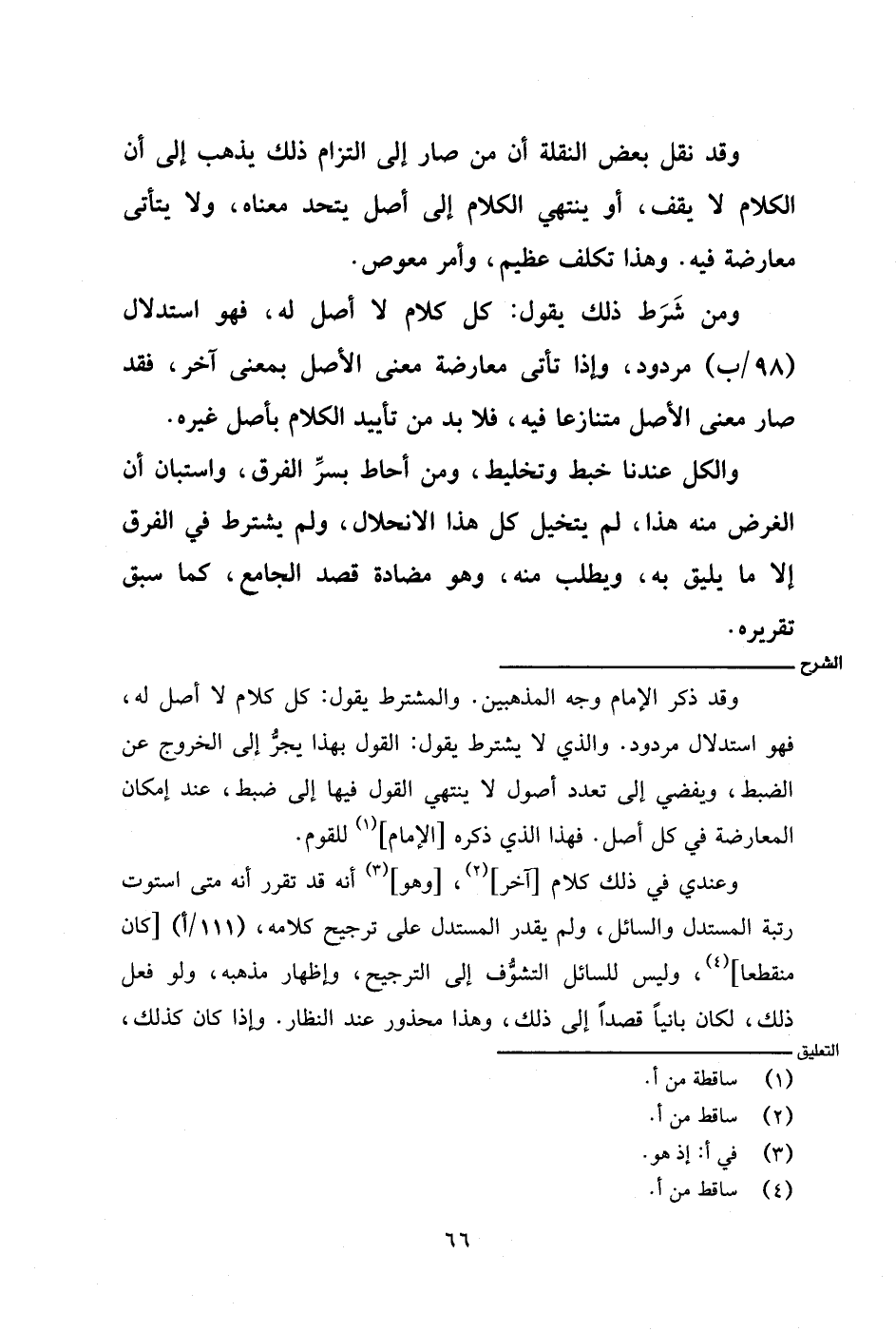 وعندي في ذلك كلام [آخر]، [وهو] أنه قد تقرر أنه متى استوت رتبة المستدل والسائل، ولم يقدر المستدل على ترجيح كلامه، (١١١/ أ) [كان منقطعًا]، وليس للسائل التشوف إلى الترجيح، وإظهار مذهبه، ولو فعل ذلك، لكان بانيًا قصدًا إلى ذلك، وهذا محذور عند النظار. وإذا كان كذلك،