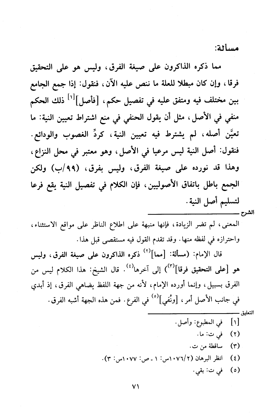 قال الإمام: (مسألة: [مما] ذكره الذاكرون على صيغة الفرق، وليس هو [على التحقيق فرقًا]) إلى آخرها. قال الشيخ: هذا الكلام ليس من الفرق بسبيل، وإنما أورده الإمام، لأنه من جهة اللفظ يضاهي الفرق، إذ أبدي في جانب الأصل أمر، [ونُفي] في الفرع. فمن هذه الجهة أشبه بالفرق.