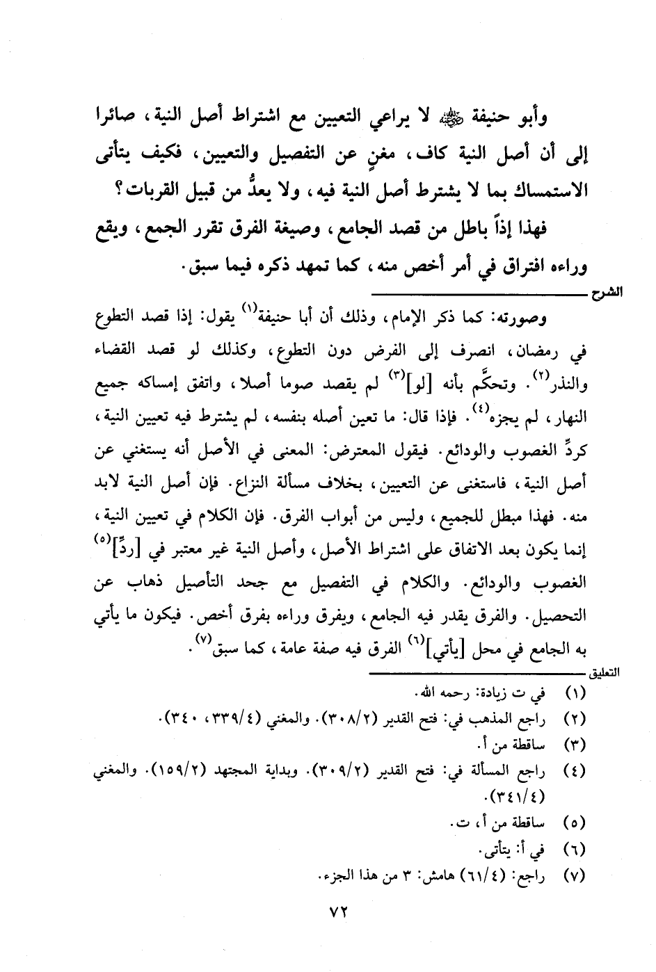 وصورته: كما ذكر الإمام، وذلك أن أبا حنيفة يقول: إذا قصد التطوع في رمضان، انصرف إلى الفرض دون التطوع، وكذلك لو قصد القضاء والنذر. وتحكم بأنه [لو] لم يقصد صومًا أصلًا، واتفق إمساكه جميع النهار، لم يجزه. فإذا قال: ما تعين أصله بنفسه، لم يشترط فيه تعيين النية، كرد الغصوب والودائع. فيقول المعرض: المعنى في الأصل أنه يستغني عن أصل النية، فاستغنى عن التعيين، بخلاف مسألة النزاع. فإن أصل النية لا بد منه. فهذا مبطل للجميع، وليس من أبواب الفرق. فإن الكلام في تعيين النية، إنما يكون بعد الاتفاق على اشتراط الأصل، وأصل النية غير معتبر في [رد] الغصوب والودائع. والكلام في التفصيل مع جحد التأصيل ذهاب عن التحصيل. والفرق يقدر فيه الجامع، ويفرق وراءه بفرق أخص. فيكون ما يأتي به الجامع في محل [يأتي] الفرق فيه صفة عامة، كما سبق.