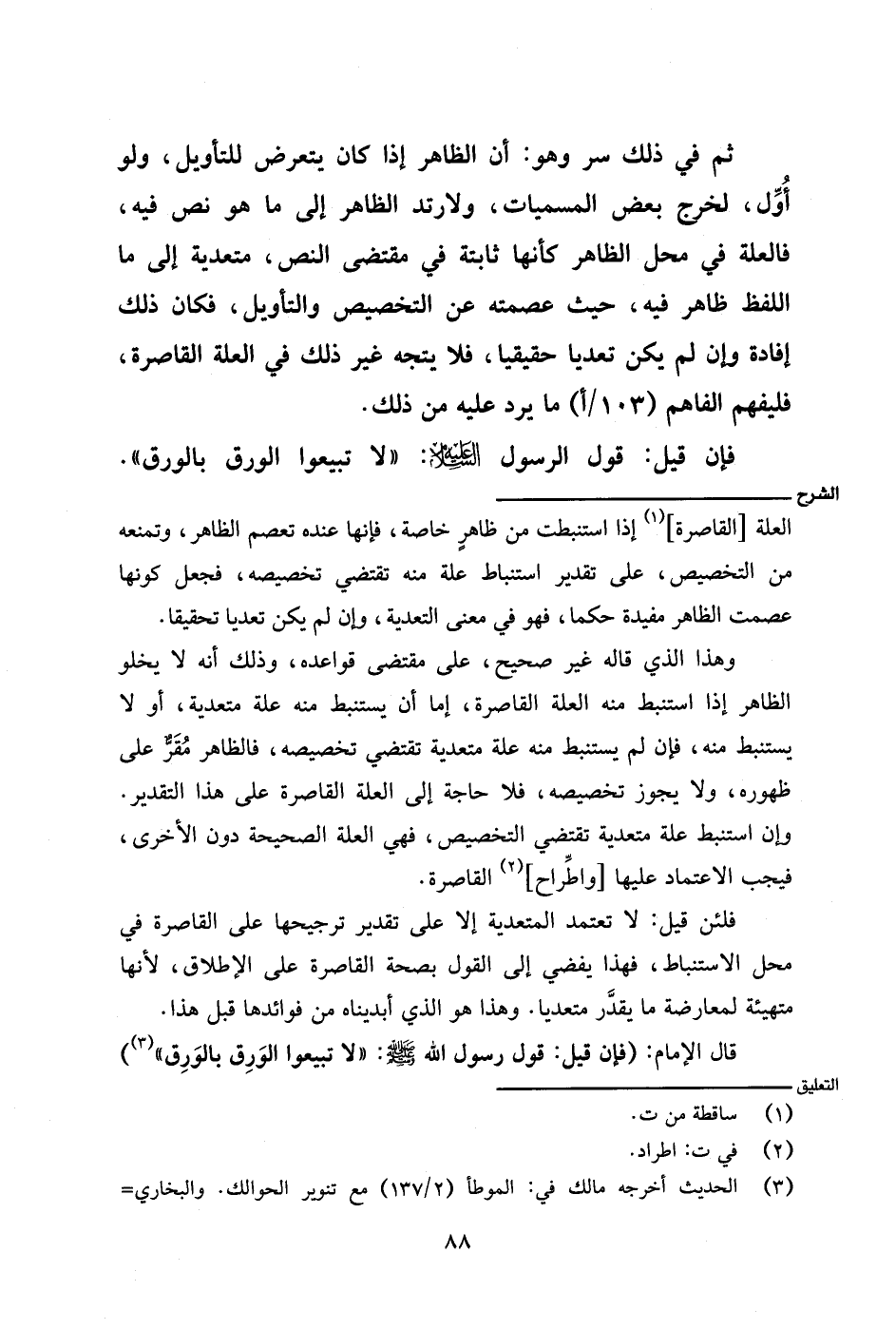 فلئن قيل: لا تعتمد المتعدية إلا على تقدير ترجيحها على القاصرة في محل الاستنباط، فهذا يفضي إلى القول بصحة القاصرة على الإطلاق، لأنها متهيئة لمعارضة ما يقدر متعديًا. وهذا هو الذي أبديناه من فوائدها قبل هذا.