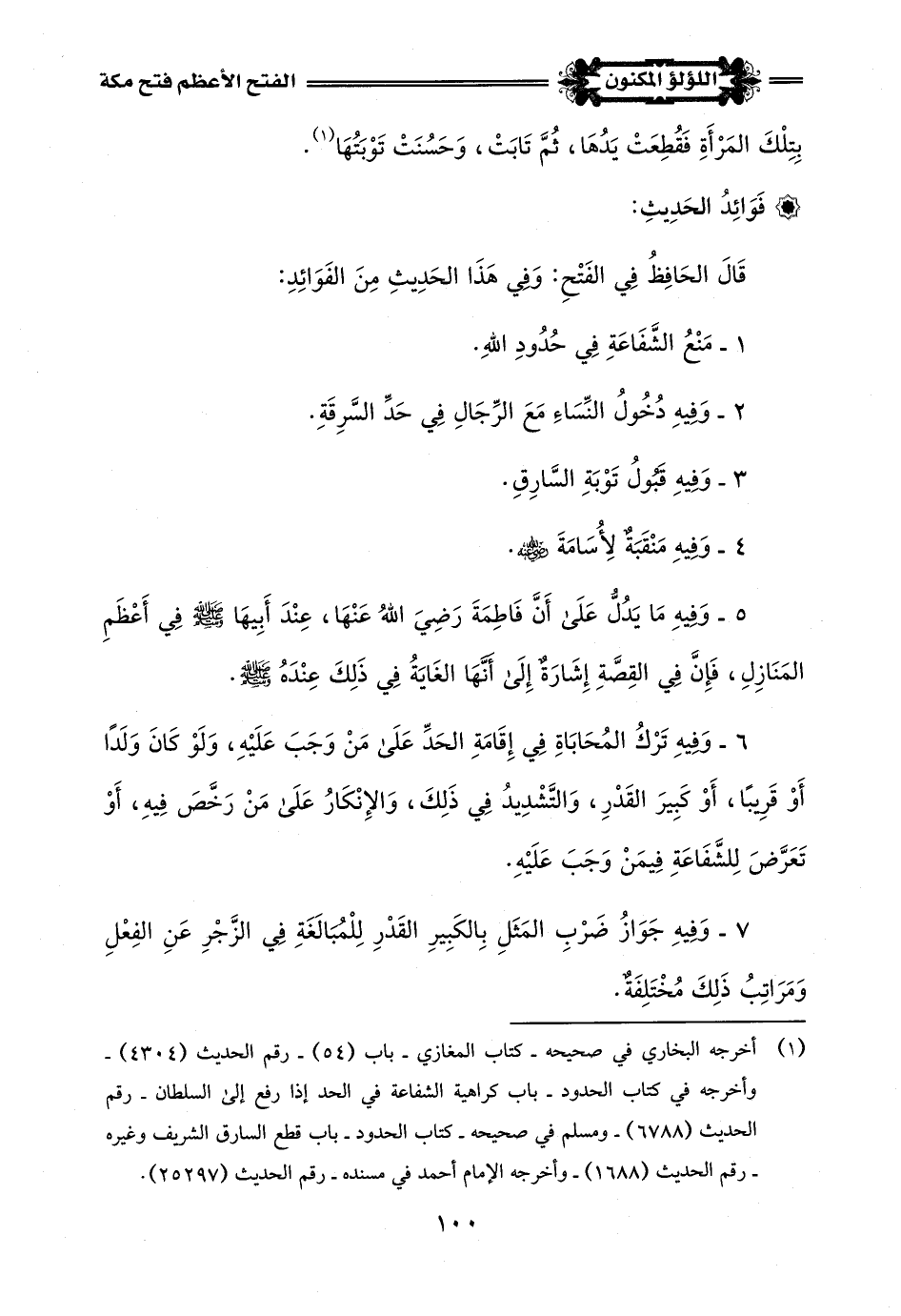 (¬4) قَالَ الحَافِظُ فِي الفَتْحِ (14/ 40): أهمتهم: أي أجلبت إليهم هَمًّا، وسبب إعظامهم ذلك خشية أن تقطع يدها لعلمهم أن رَسُول اللَّهِ -صلى اللَّه عليه وسلم- لا يرخص في الحدود.