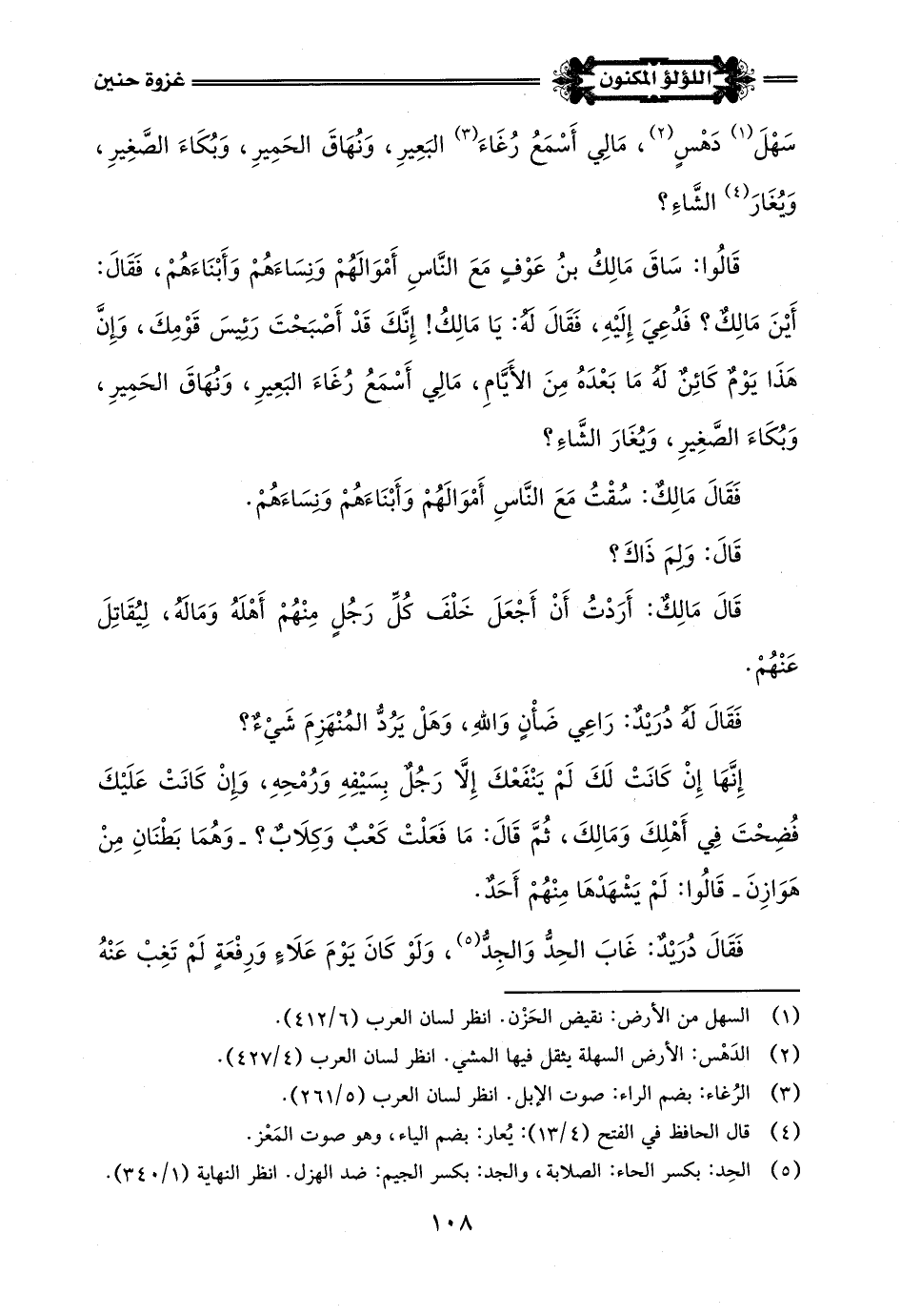 (¬1) قَالَ الحَافِظُ فِي الفَتْحِ (8/ 343): حنين: بالتصغير، وادٍ إلى جنب ذي المجاز قريب من الطائف، بينه وبين مكة بضعة عشر ميلًا من جهة عرفات.