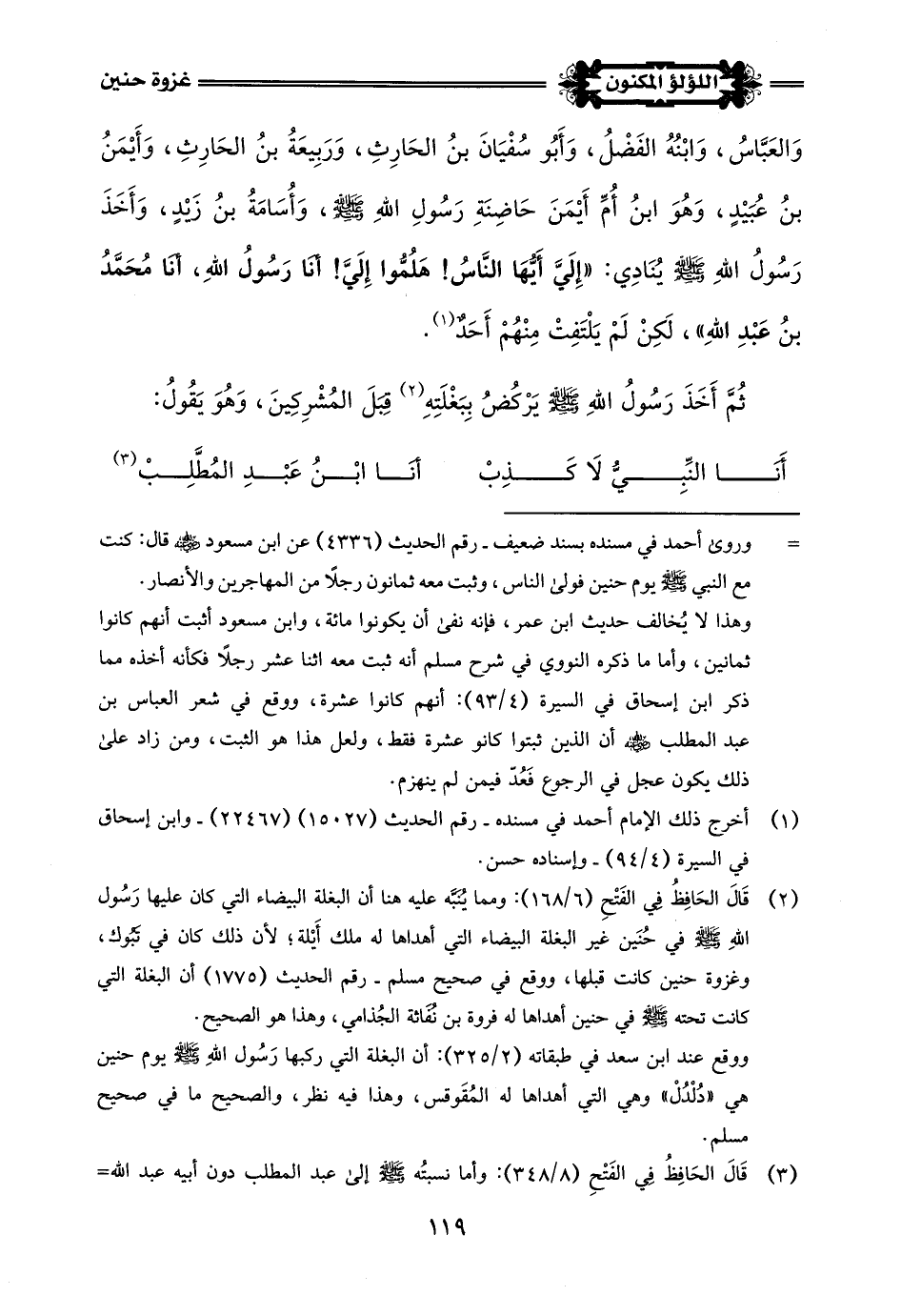 (¬7) أخرجه مسلم في صحيحه - كتاب الجهاد والسير - باب في غزوة حنين - رقم الحديث (1776) (78).