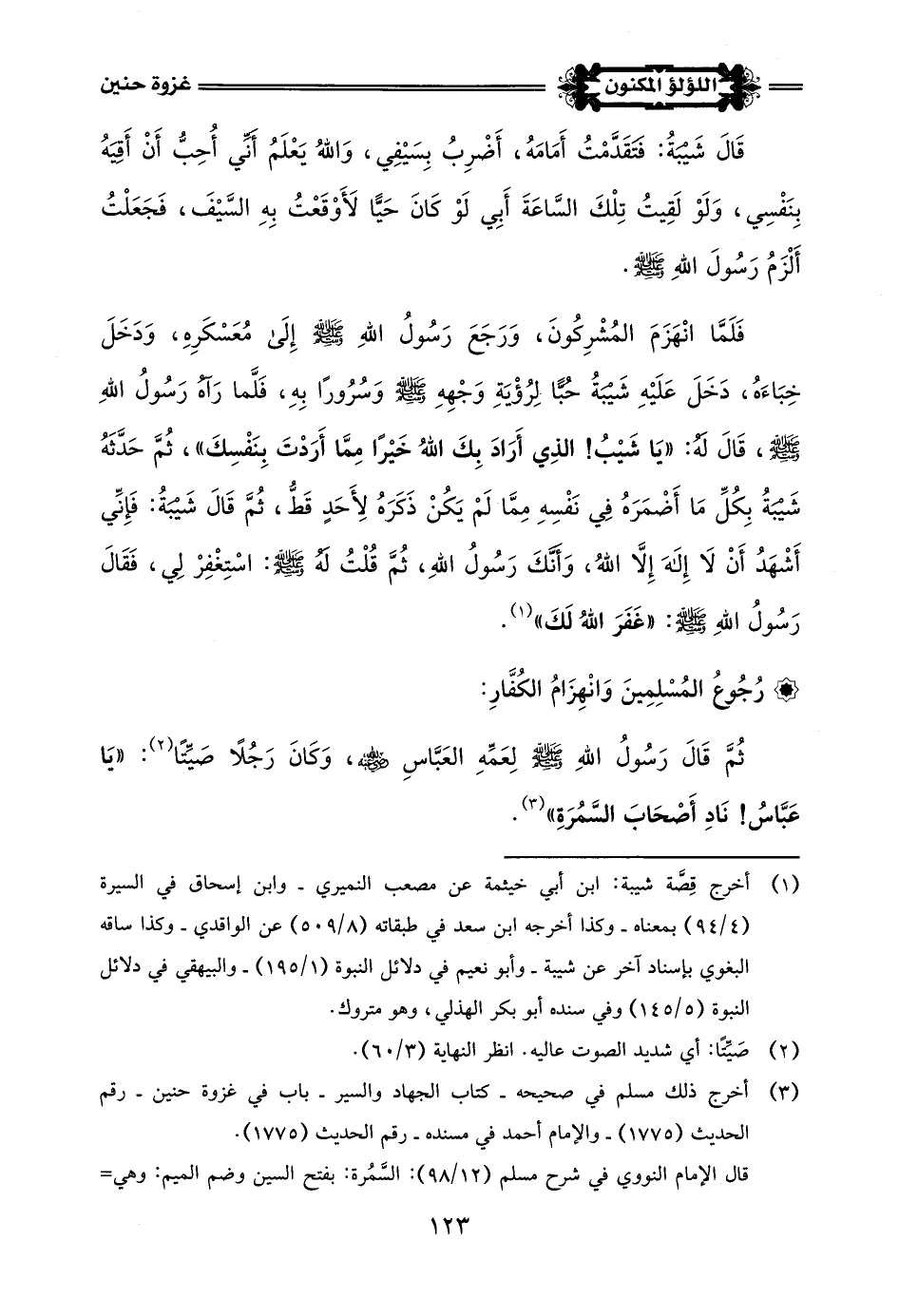 (¬1) أخرج ذلك الإمام مسلم في صحيحه - كتاب الجهاد والسير - باب غزوة حنين - رقم الحديث (1776) (79).