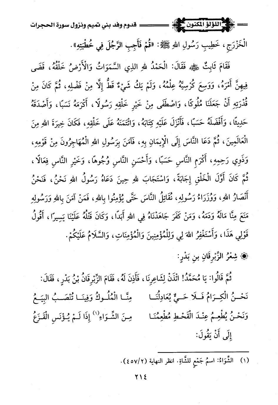 (¬1) أخرج ذلك الإِمام أحمد في مسنده - رقم الحديث (15991) - وإسناده ضعيف - وله شاهد عند النسائي في السنن الكبرى - كتاب التفسير - باب سورة الحجرات - رقم الحديث (11451) - والترمذي في جامعه - كتاب التفسير - باب ومن سورة الحجرات - رقم الحديث (3550) - وإسناده حسن.