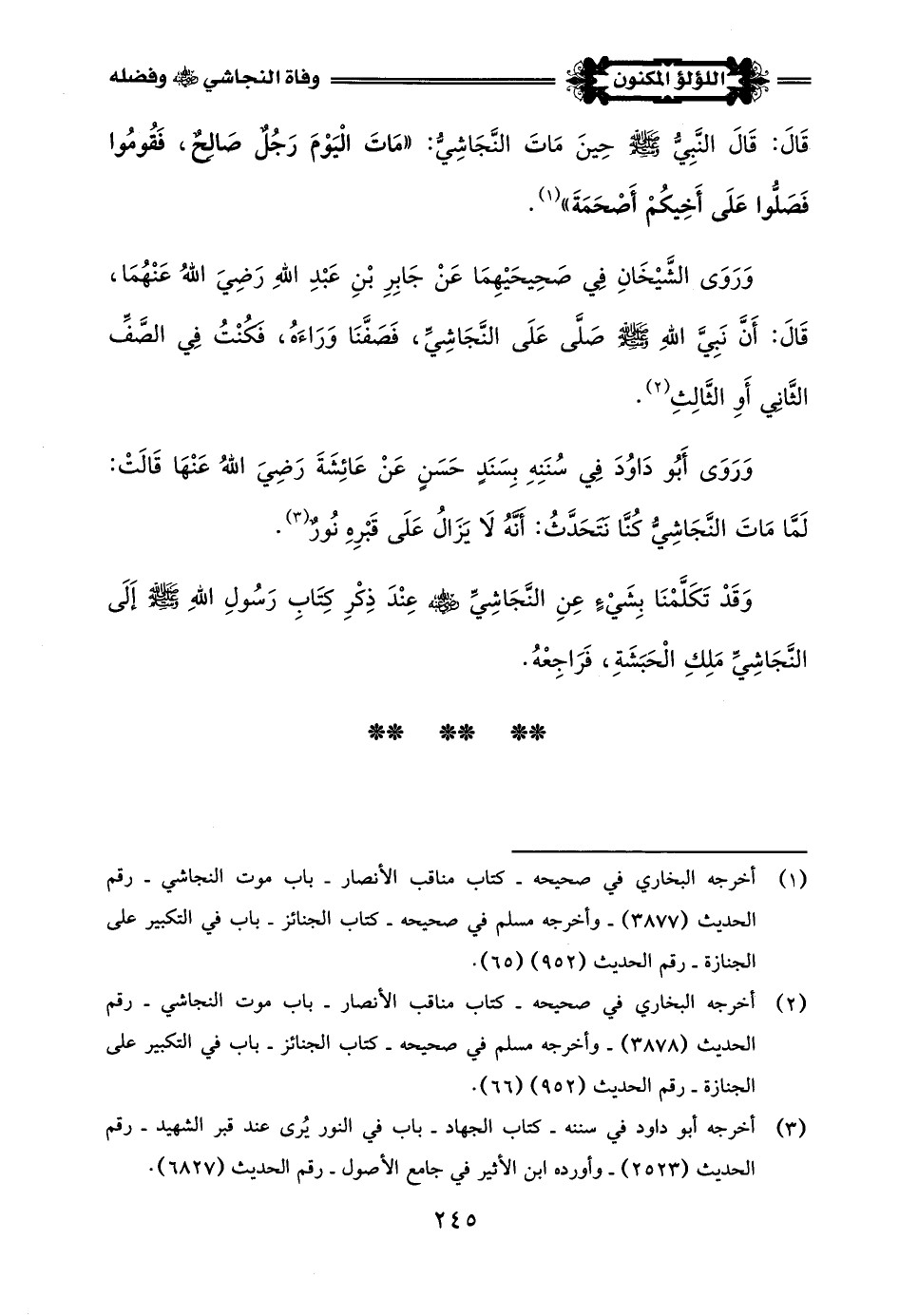 (¬3) أخرجه البخاري في صحيحه - كتاب مناقب الأنصار - باب موت النجاشي - رقم الحديث (3880) - وأخرجه مسلم في صحيحه - كتاب الجنائز - باب في التكبير على الجنازة - رقم الحديث (951) (63).