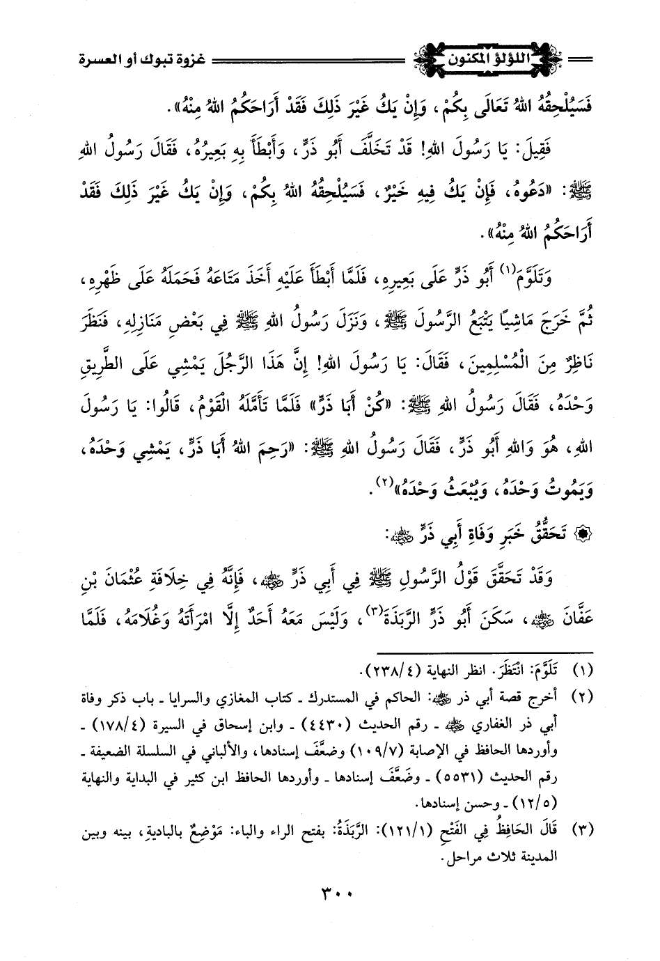 * إِبْطَاءُ جَمَلِ أَبِي ذَرٍّ الْغِفَارِيِّ -رضي اللَّه عنه-: