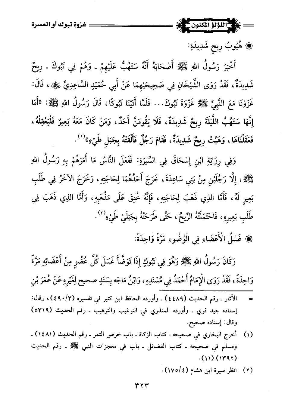 (¬1) هذا هو الصحيح في إقامة الرَسُول -صلى اللَّه عليه وسلم- بتبوك، وقد أخرج ذلك الإمام أحمد في مسنده - رقم الحديث (14139) - وابن حبان في صحيحه - كتاب الصلاة - باب في صلاة السفر- رقم الحديث (2749) - وإسناده صحيح على شرط الشيخين.