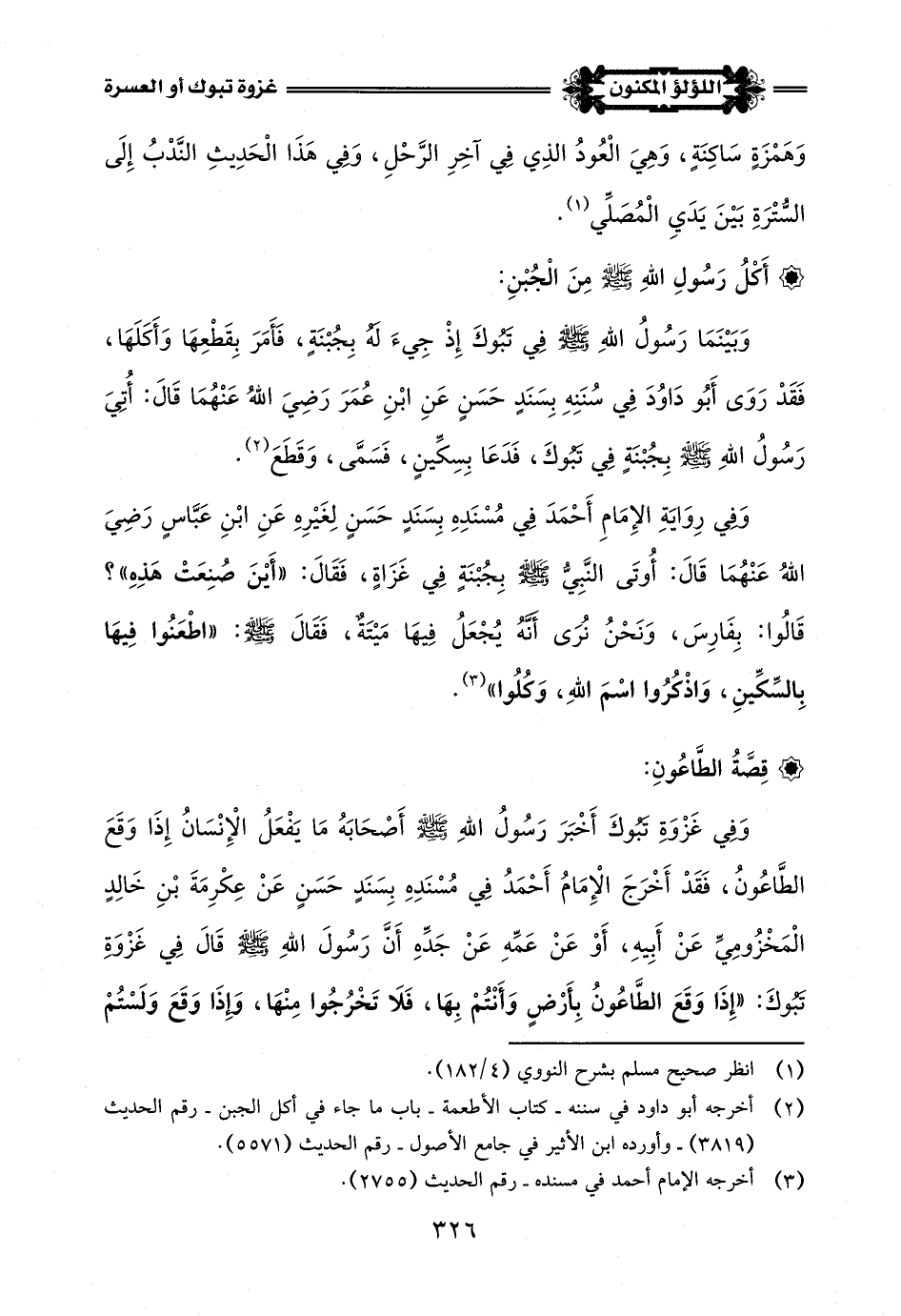 (¬4) أخرجه أبو داود في سننه - كتاب الأطعمة - باب ما جاء في أكل الجبن - رقم الحديث (3819) - وأورده ابن الأثير في جامع الأصول - رقم الحديث (5571).