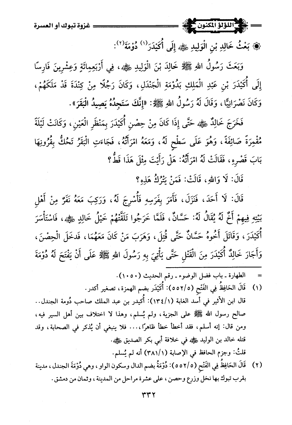 (¬2) قَالَ الحَافِظُ فِي الفَتْحِ (5/ 552): دُوْمَةُ بضم الدال وسكون الواو، وهي دُوْمَةَ الجندل، مدينة بقرب تبوك بها نخل وزرع وحصن، على عشرة مراحل من المدينة، وثمان من دمشق.