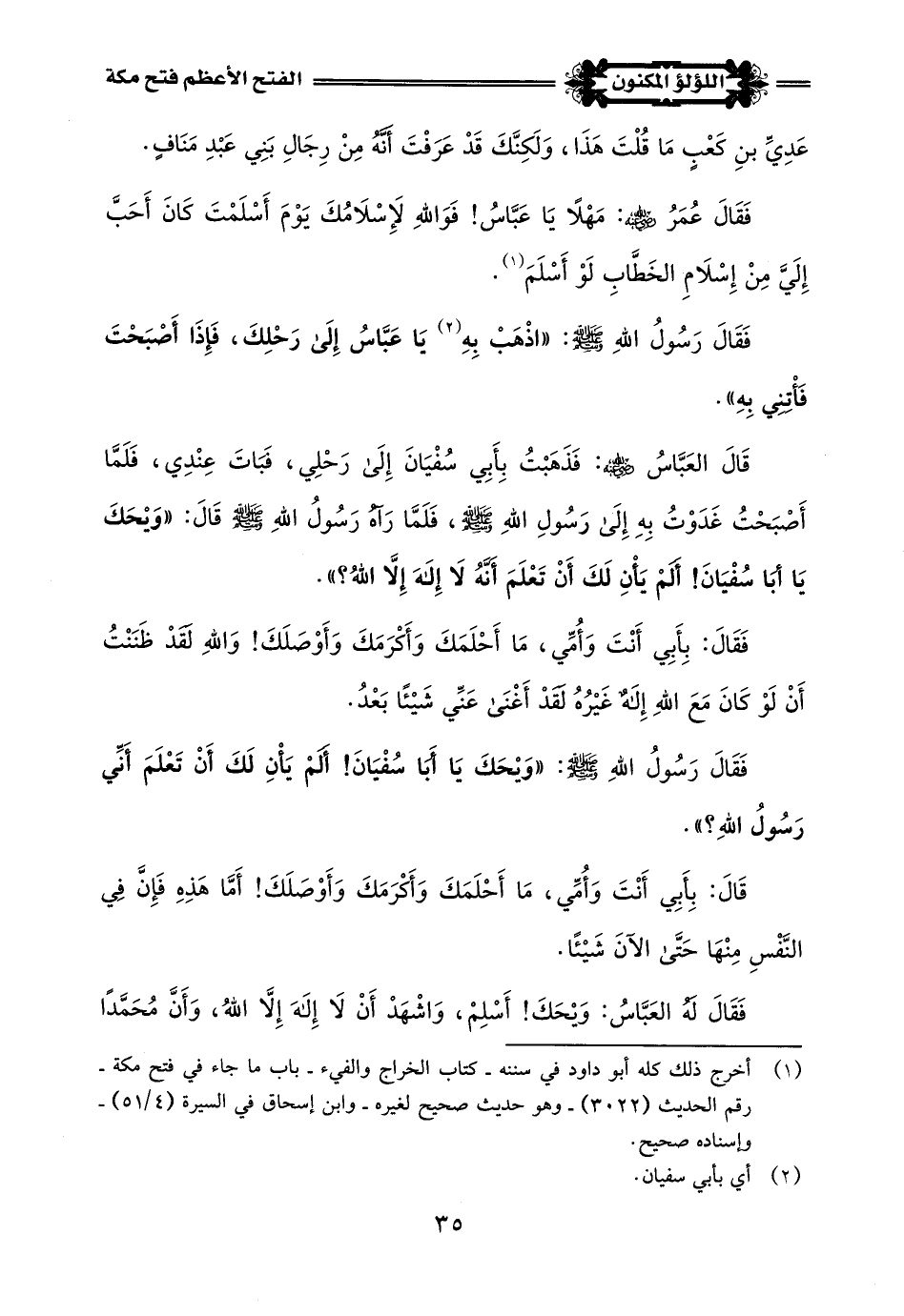 فَعَرَفَ أَبُو سُفْيَانَ صَوْتَ العَبَّاسِ، فَقَالَ: أَبَا الفَضْلِ! مَا وَرَاءَكَ.