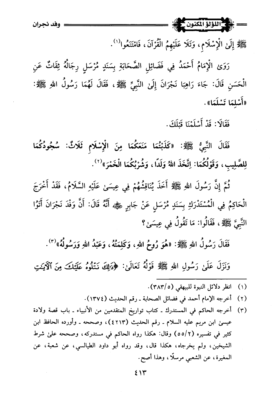 (¬4) أخرجه البخاري في صحيحه - كتاب المغازي - باب قصة أهل نجران - رقم الحديث (4380) - وأخرجه الإمام أحمد في مسنده - رقم الحديث (3930).