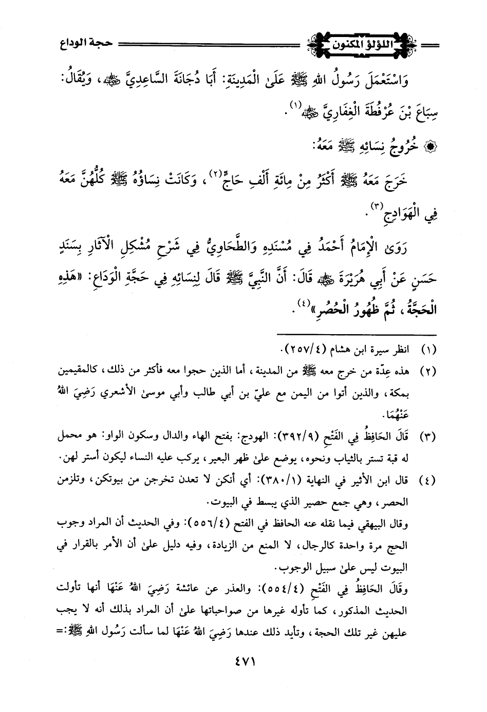 = يا رَسُول اللَّهِ ألا نغزو ونجاهد معكم؟ ، فقال -صلى اللَّه عليه وسلم-: "لكن أحسن الجهاد وأجمله الحج حج مبرور"، فقالت رَضِيَ اللَّهُ عَنْهَا: فلا أدع الحج بعد إذ سمعت هذا من رَسُول اللَّهِ -صلى اللَّه عليه وسلم-. أخرجه البخاري في صحيحه - رقم الحديث (1861).
