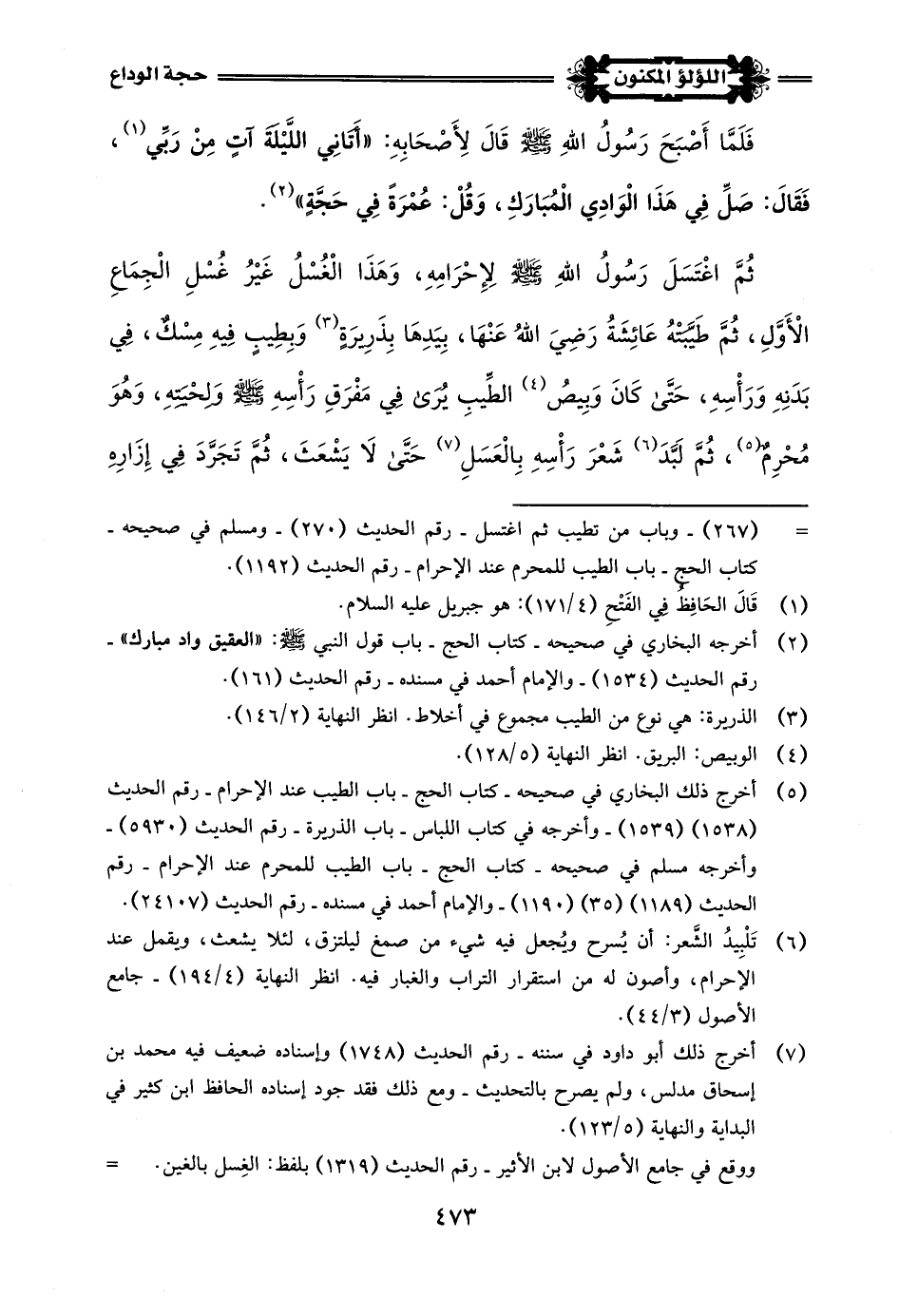 (¬1) أخرج ذلك البخاري في صحيحه - كتاب الحج - باب ما يلبس المحرم من الثياب - رقم الحديث (1545) - والترمذي في جامعه - كتاب الحج - باب ما جاء في الاغتسال عند الإحرام - رقم الحديث (845) - وانظر نيل الأوطار للشوكاني (2/ 363).