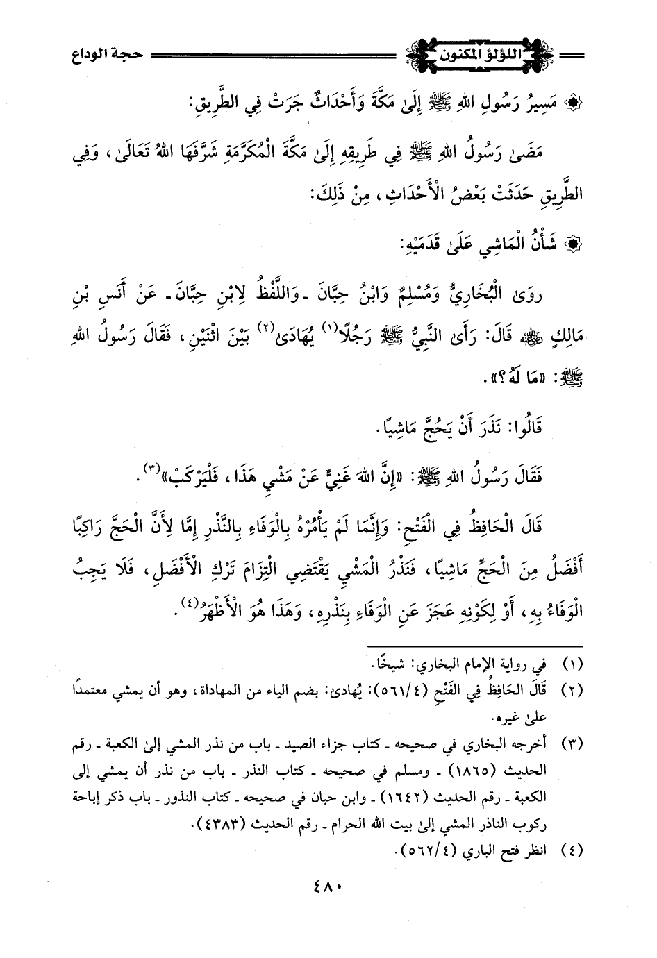 رَوَى الْإِمَامُ أَحْمَدُ فِي مُسْنَدِهِ وَابْنُ حِبَّانَ فِي صَحِيحِهِ بِسَنَدٍ صَحِيحٍ عَلَى شَرْطِ الشَّيْخَيْنِ عَنْ عُمَيْرِ بْنِ سَلَمَةَ الضَّمْرِيِّ -رضي اللَّه عنه- قَالَ: أَنَّ رَسُولَ اللَّهِ -صلى اللَّه عليه وسلم- خَرَجَ يُرِيدُ مَكَّةَ، حَتَّى إِذَا كَانَ بِالرَّوْحَاءِ (¬3)، إِذَا حِمَارٌ وَحْشِيٌّ عَقِيرٌ (¬4)، فَذُكِرَ ذَلِكَ لِرَسُولِ اللَّهِ -صلى اللَّه عليه وسلم-، فَقَالَ: "دَعُوهُ، فَإِنَّهُ يُوشِكُ أَنْ يَأْتِيَ صَاحِبُهُ"، فَجَاءَ رَجُلٌ مِنْ بَهْرٍ، وهو صاحبه، إِلَى رسول اللَّه -صلى اللَّه عليه وسلم-، فَقَالَ: يَا رَسُولَ اللَّهِ، شَأْنُكُمْ بِهَذَا الْحِمَارِ، فَأَمَرَ