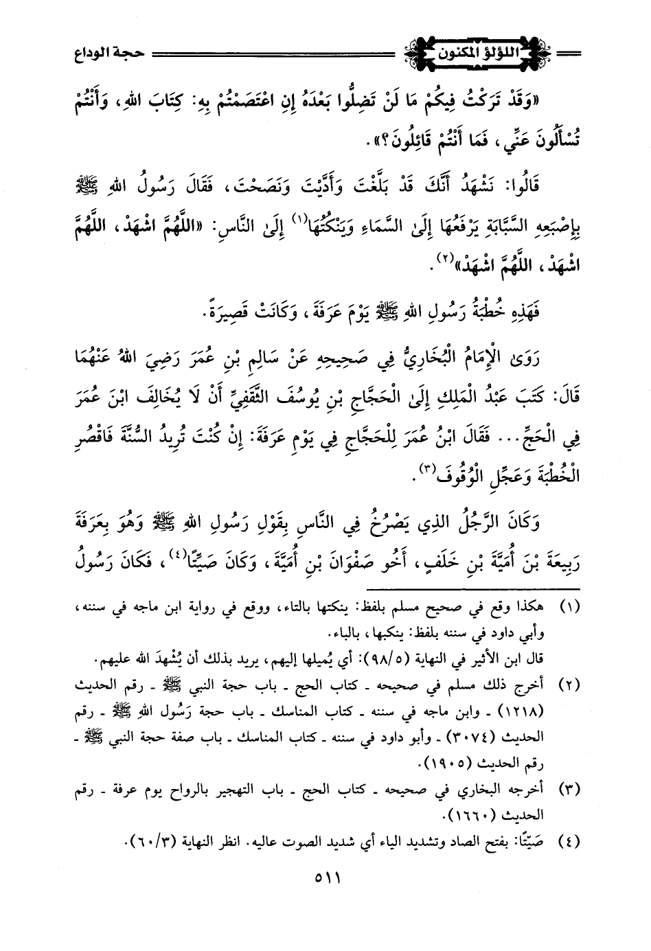 (¬4) أخرج ذلك الإِمام مسلم في صحيحه - كتاب الحج - باب حجة النبي -صلى اللَّه عليه وسلم- رقم الحديث (1218) وابن حبان في صحيحه - كتاب الحج - باب وصف حجة النبي -صلى اللَّه عليه وسلم- رقم الحديث (3944).