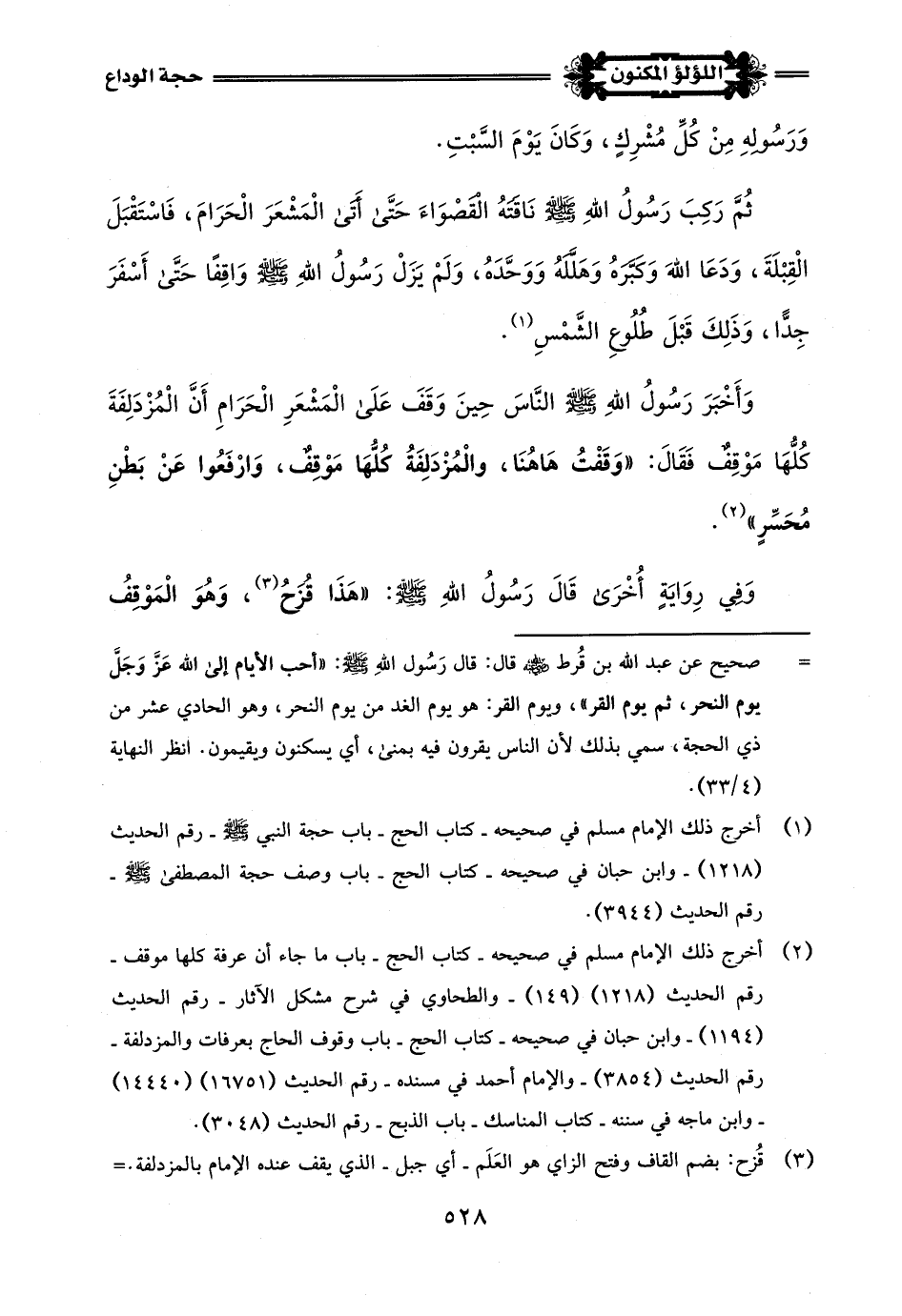 (¬2) أخرج ذلك الإمام أحمد في مسنده - رقم الحديث (1348) - وأبو داود في سننه - كتاب المناسك - باب الصلاة بجمع- رقم الحديث (1935) وإسناده حسن.