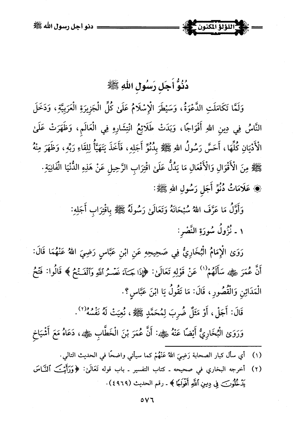 (¬2) أخرجه البخاري في صحيحه - كتاب التفسير - باب قوله تَعَالَى: {فَسَبِّحْ بِحَمْدِ رَبِّكَ وَاسْتَغْفِرْهُ إِنَّهُ كَانَ تَوَّابًا} رقم الحديث (4970).
