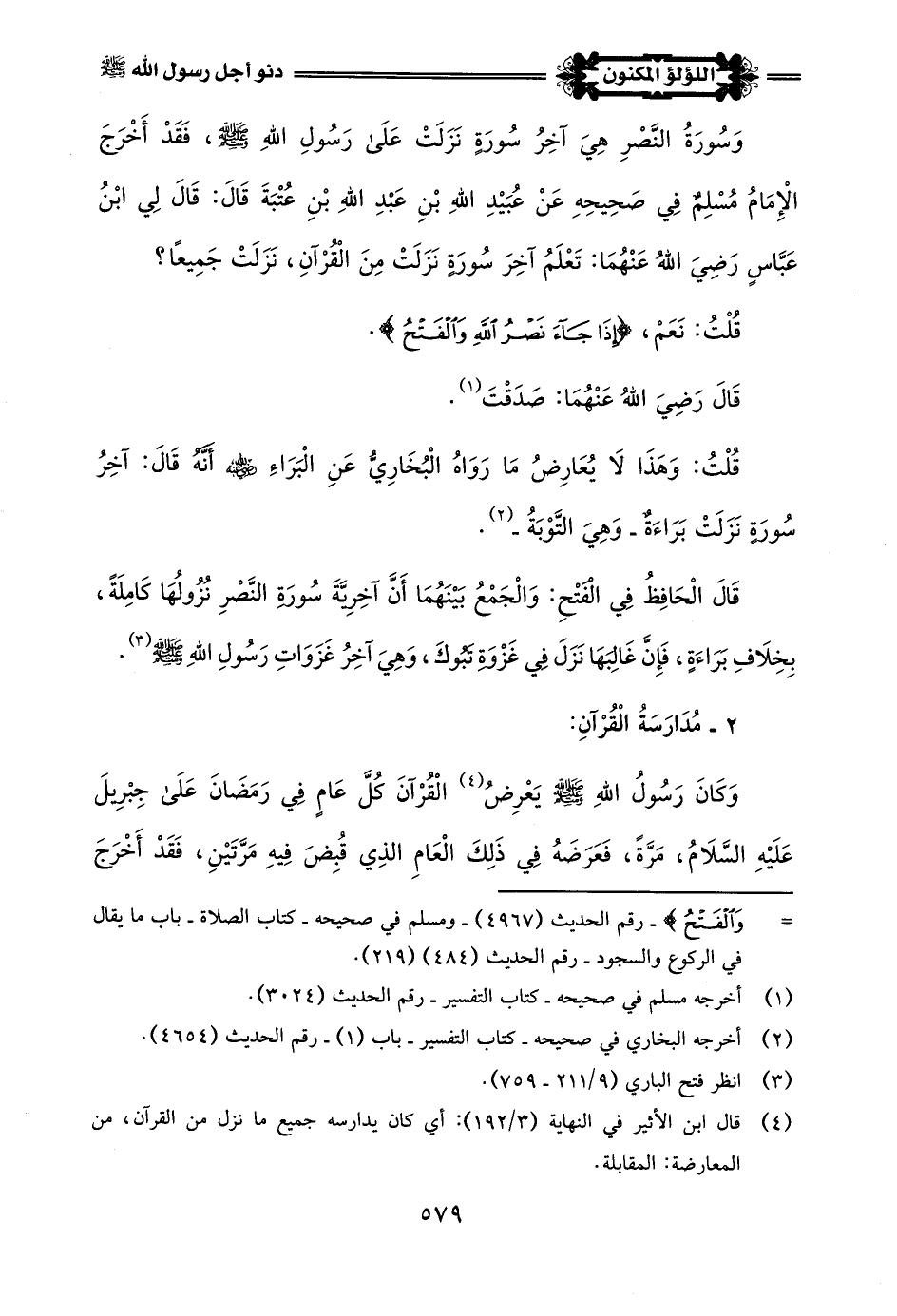 وَاجْتَهَدَ رَسُولُ اللَّهِ -صلى اللَّه عليه وسلم- فِي الْعَامِ الذِي قُبِضَ فِيهِ مِنَ الْعِبَادَةِ، وَأَكْثَرَ مِنَ الذِّكْرِ وَالِاسْتِغْفَارِ، فَقَدْ أَخْرَجَ النَّسَائِيُّ فِي السُّنَنِ الْكُبْرَى عَنِ ابْنِ عَبَّاسٍ رَضِيَ اللَّهُ عَنْهُمَا قَالَ: لَمَّا نَزَلَتْ: {إِذَا جَاءَ نَصْرُ اللَّهِ وَالْفَتْحُ} إِلَى آخِرِ السُّورَةِ، نُعِيَتْ