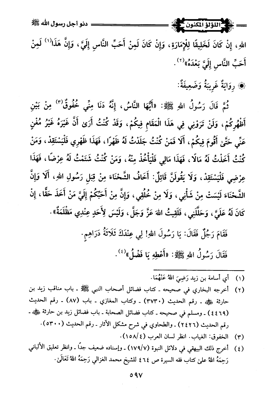 (¬3) قال الإِمام النووي رَحِمَهُ اللَّهُ تَعَالَى في شرح مسلم (11/ 76): أما كلام عمر -رضي اللَّه عنه- فقد اتفق العلماء المتكلمون في شرح هذا الحديث على أنه من دلائل فقه عمر -رضي اللَّه عنه- وفضائله، ودقيق نظره؛ لأنه خشي أن يكتب -صلى اللَّه عليه وسلم- أمورًا ربما عجزوا عنها، واستحقوا العقوبة عليها؛ لأنها منصوصة لا مجال للاجتهاد فيها، فقال عمر -رضي اللَّه عنه-: حسبنا كتاب اللَّه، لقوله تَعَالَى في سورة الأنعام آية (38): {مَا فَرَّطْنَا فِي الْكِتَابِ مِنْ شَيْءٍ} , وقوله تَعَالَى في سورة المائدة آية (3): {الْيَوْمَ أَكْمَلْتُ لَكُمْ دِينَكُمْ} فعلم أن اللَّه تَعَالَى أكمل دينه فأمن الضلال على الأمة، فكان عمر -رضي اللَّه عنه- أفقه من ابن عباس رَضِيَ اللَّهُ عَنْهُمَا وموافقيه.