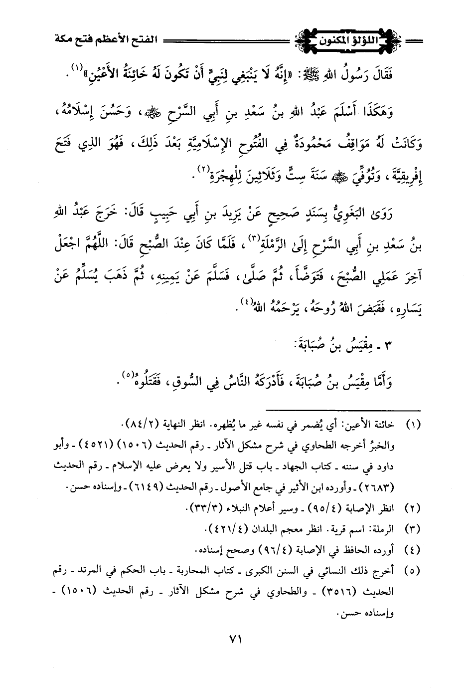 (¬1) أخرج ذلك: النسائي في السنن الكبرى - كتاب المحاربة - باب الحكم في المرتد - رقم الحديث (3516) - والطحاوي في شرح مشكل الآثار - رقم الحديث (1506) - وأورده ابن الأثير في جامع الأصول - رقم الحديث (6149) وإسناده حسن.