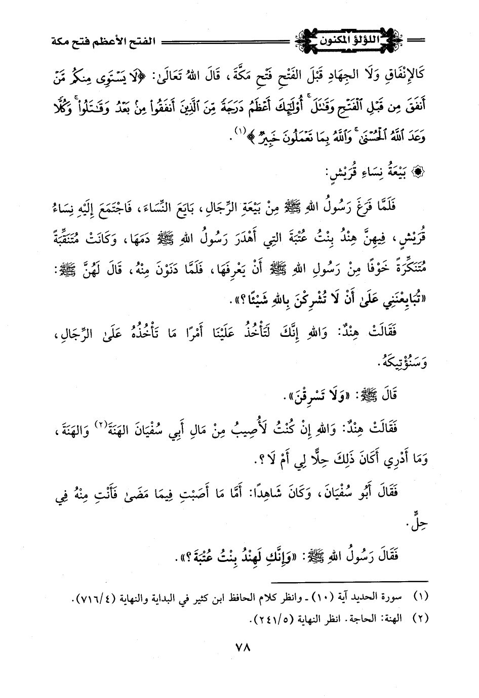 (¬1) أخرجه البخاري في صحيحه كتاب المغازي - باب مقام النبي -صلى اللَّه عليه وسلم- بمكة زمن الفتح - رقم الحديث (4305) (4306) - وأخرجه مسلم في صحيحه - كتاب الإمارة - باب المبايعة بعد فتح مكة علي الإسلام - رقم الحديث (1863) (84).