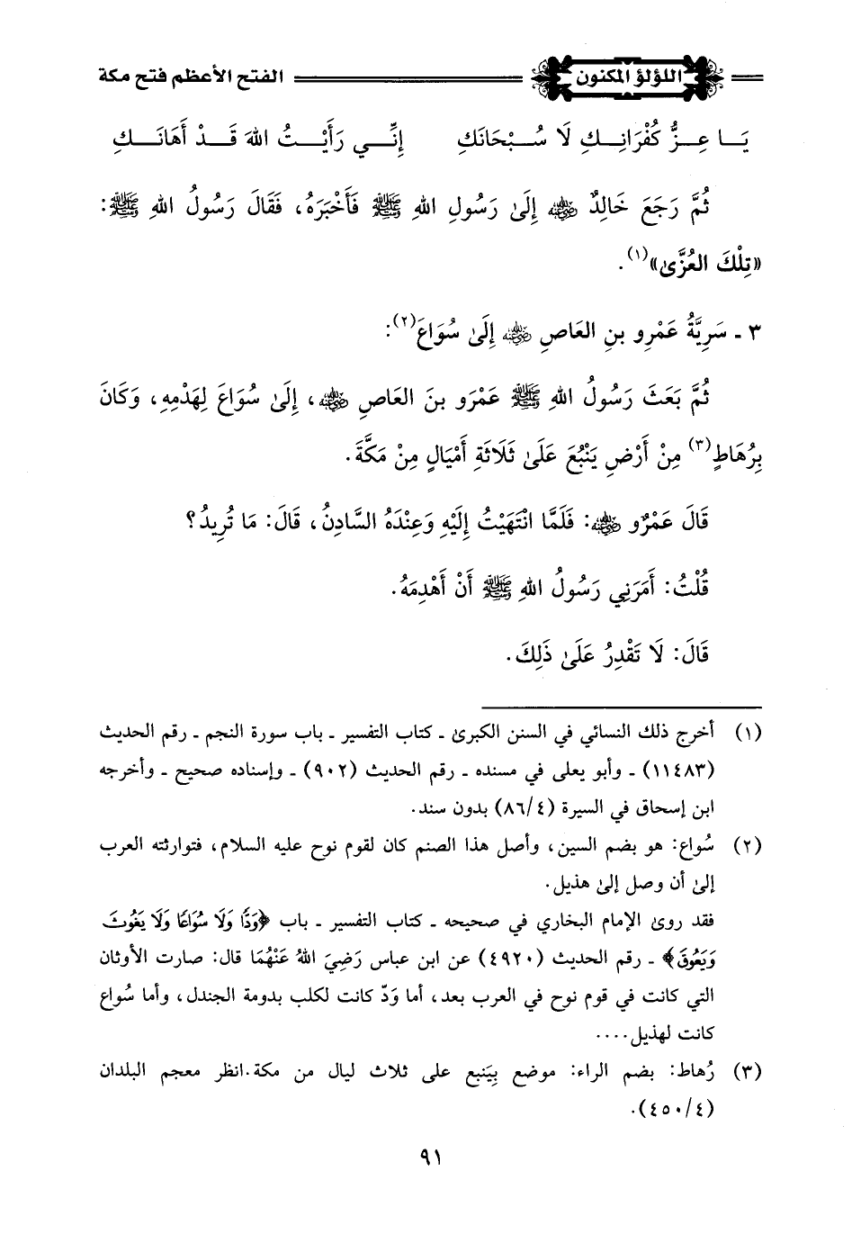 (¬2) مَناة: بفتح الميم والنون، صنم كان لهذيل وخزاعة فِي منطقة قُديد -بالتصغير- بين مكة والمدينة. انظر النهاية (4/ 313).