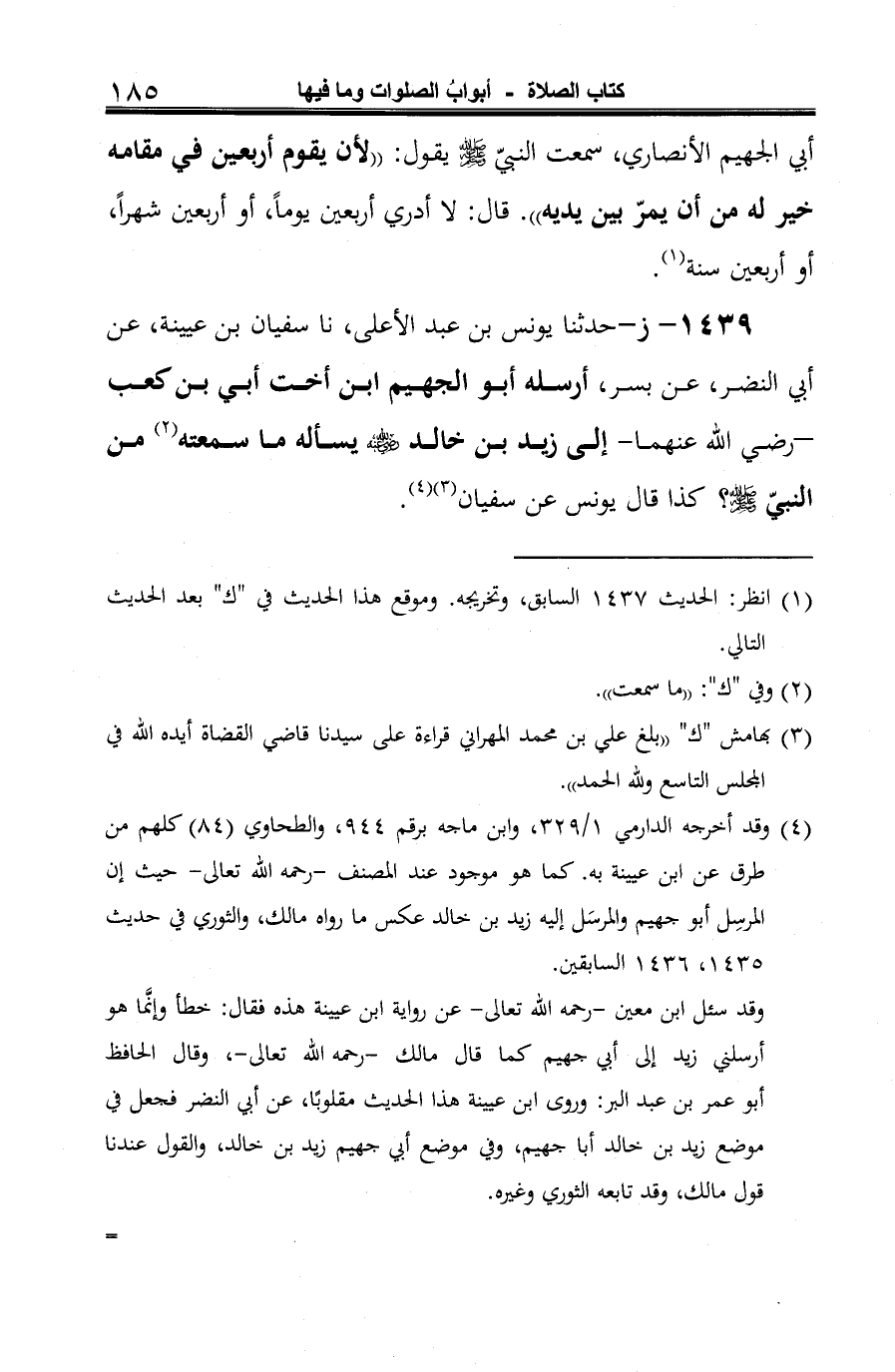 (¬3) وقد أخرجه الدارمي 1/ 329، وابن ماجه برقم 944، والطحاوي (84) كلهم من طرق عن ابن عيينة به. كما هو موجود عند المصنف -رحمه الله تعالى- حيث إن المرسِل أبو جهيم والمرسَل إليه زيد بن خالد عكس ما رواه مالك، والثوري في حديث 1435، 1436 السابقين.
