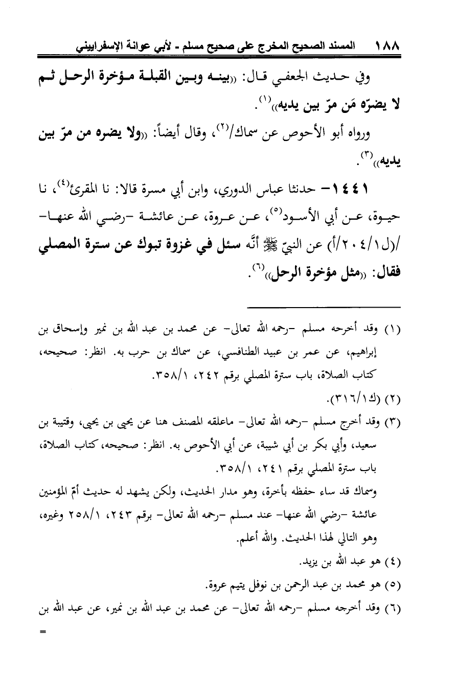 -[189]- = يزيد، به. انظر: صحيحه، كتاب الصلاة، باب سترة المصلي برقم 244، 1/ 359.