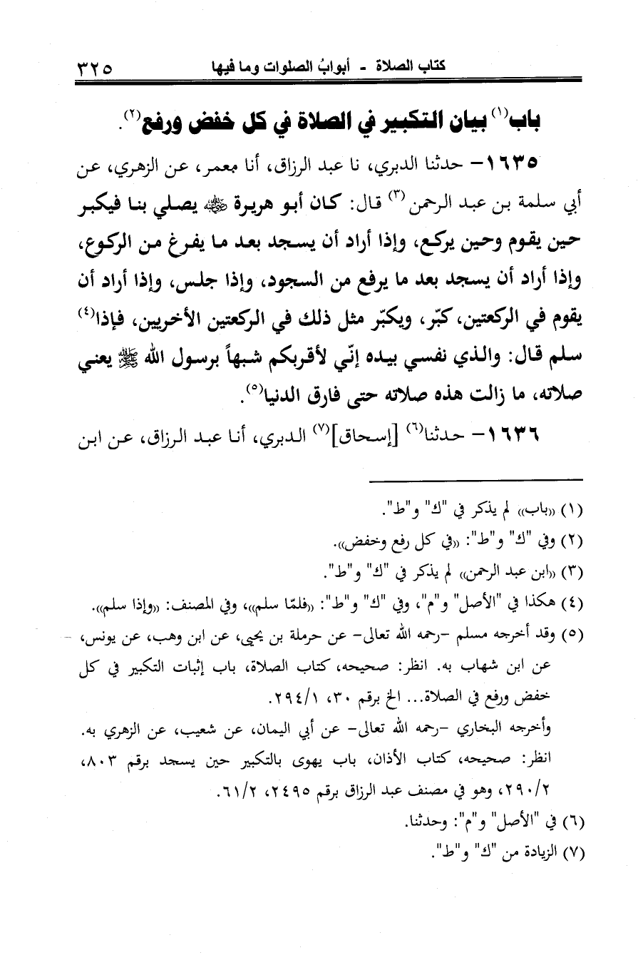 (¬6) وقد أخرج روايته البيهقي. انظر: سننه كتاب الصلاة، باب التكبير للركوع وغيره، 2/ 67، وقد تابعه عند البخاي أَبو اليمان عن شعيب، عن الزهري به. انظر: تخريج الحديث 1635 السابق.