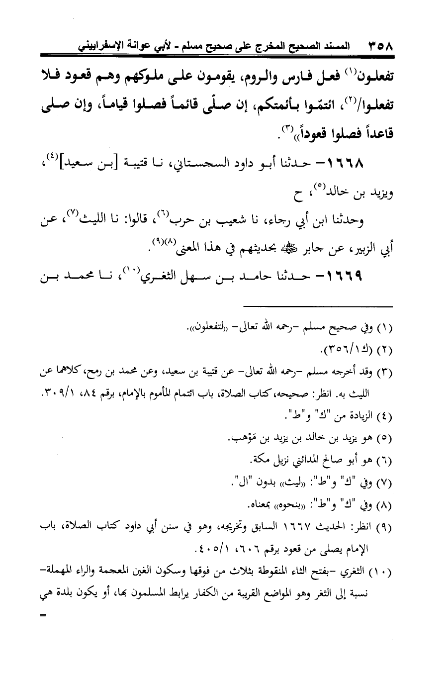(¬4) وقد أخرجه مسلم -رحمه الله تعالى- عن يحيى بن يحيى، عن حميد بن عبد الرحمن الرؤاسي به. انظر: صحيحه، كتاب الصلاة، باب ائتمام المأموم بالإمام برقم 85، 1/ 309.