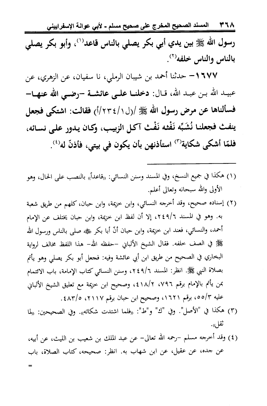 -[369]- = استخلاف الإمام إذا عرض له عذر من مرض وسفر، وغيرهما من يصلي بالناس ... الخ برقم 92، 1/ 312.