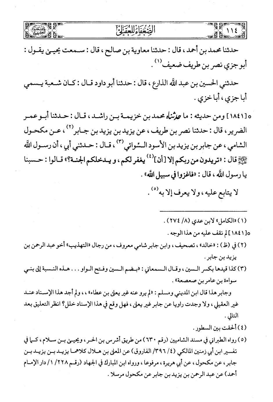 (3) في (ظ): «خالد»، تصحيف، وابن جابر شامي معروف، من رجال «التهذيب» أخو عبد الرحمن بن يزيد بن جابر.