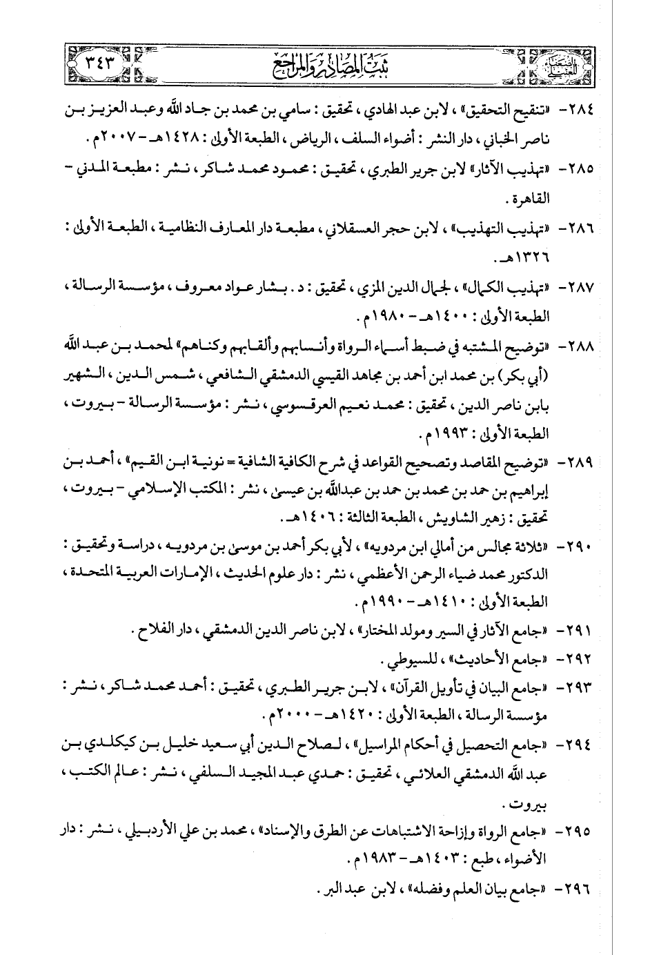 287 - «تهذيب الكمال»، لجمال الدين المزي، تحقيق: د. بشار عواد معروف، مؤسسة الرسالة، الطبعة الأولى: 1400هـ - 1980م.