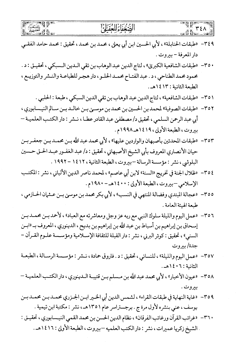350 - «طبقات الشافعية الكبرى»، لتاج الدين عبد الوهاب بن تقي الدين السبكي، تحقيق: د. محمود محمد الطناحي، د. عبد الفتاح محمد الحلو، دار هجر للطباعة والنشر والتوزيع، الطبعة الثانية: 1413هـ.