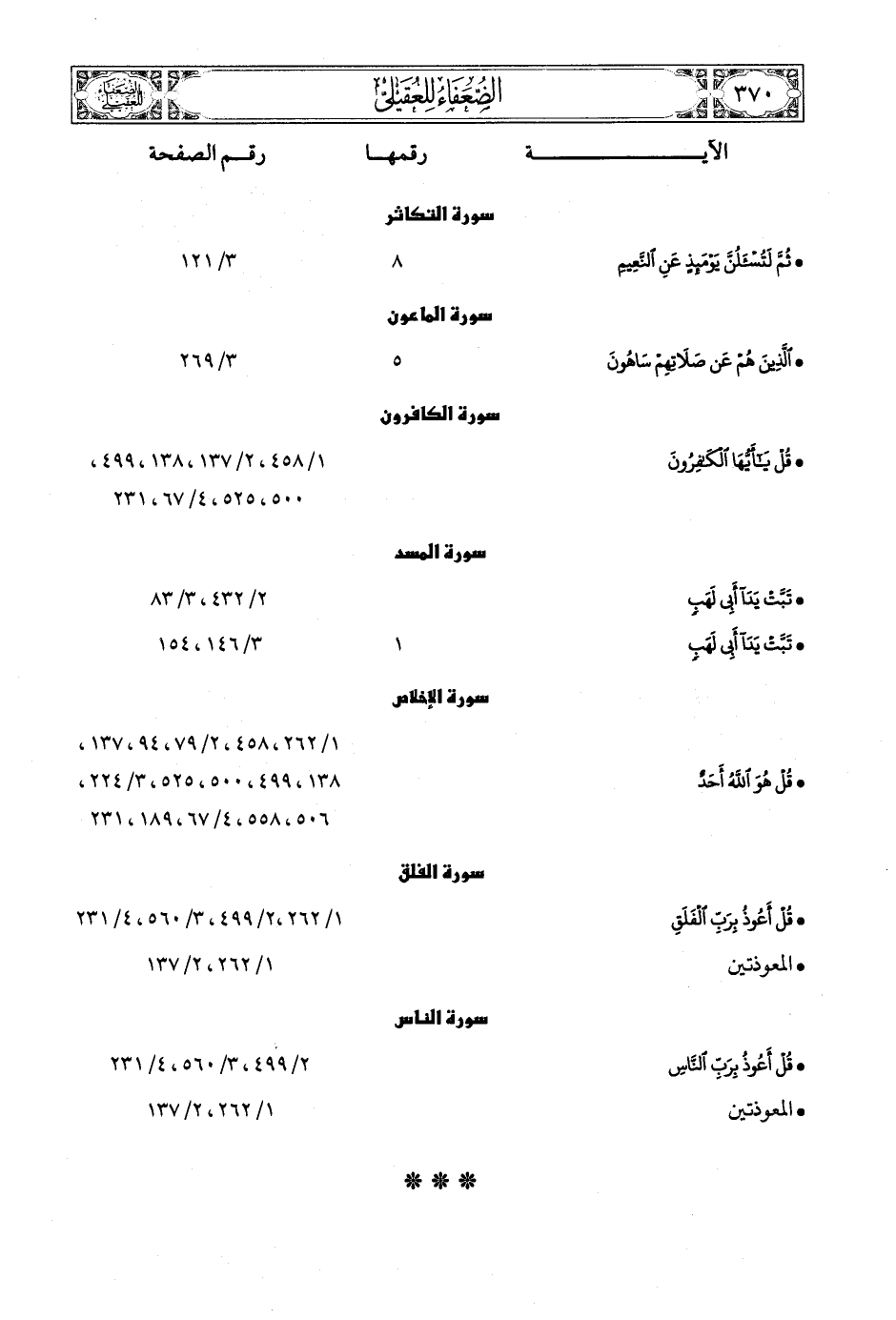 * قُلْ أَعُوذُ بِرَبِّ الْفَلَقِ ... 1/ 262،2/ 499، 3/ 560، 4/ 231
