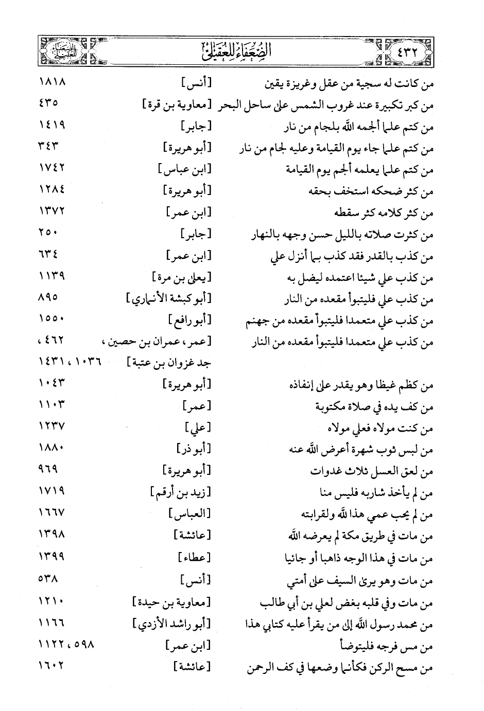 من كذب علي متعمدا فليتبوأ مقعده من النار [عمر، عمران بن حصين، 462،
