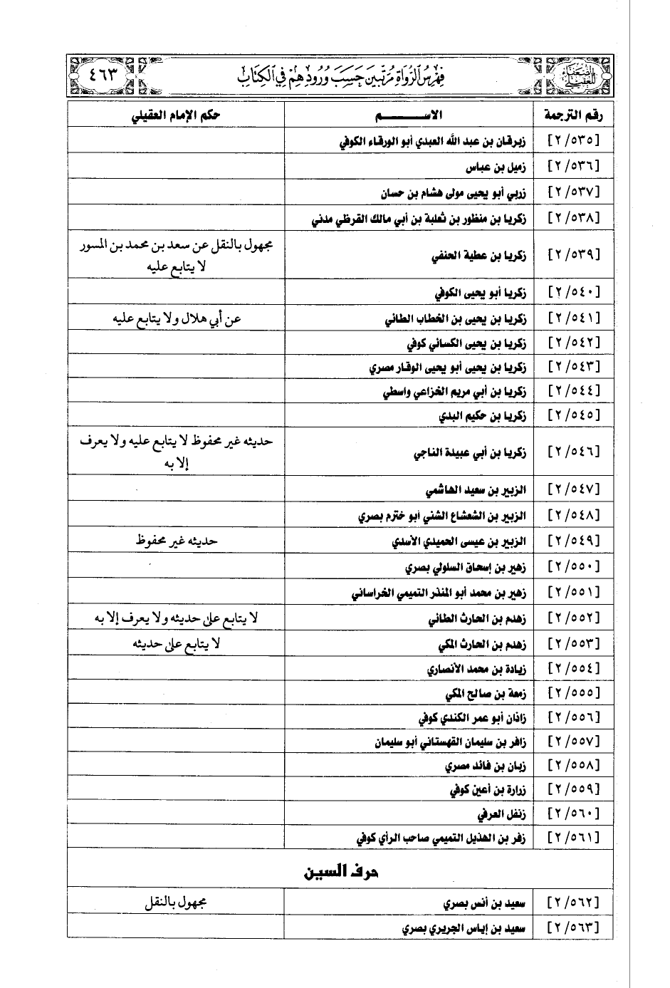 [535/ 2] ... زبرقان بن عبد الله العبدي أبو الورقاء الكوفي