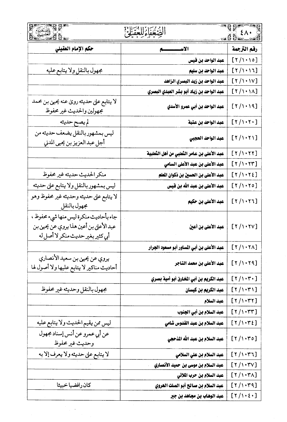 [1024/ 2] ... عبد الأعلى بن الحسين بن ذكوان المعلم ... منكر الحديث حديثه غير محفوظ