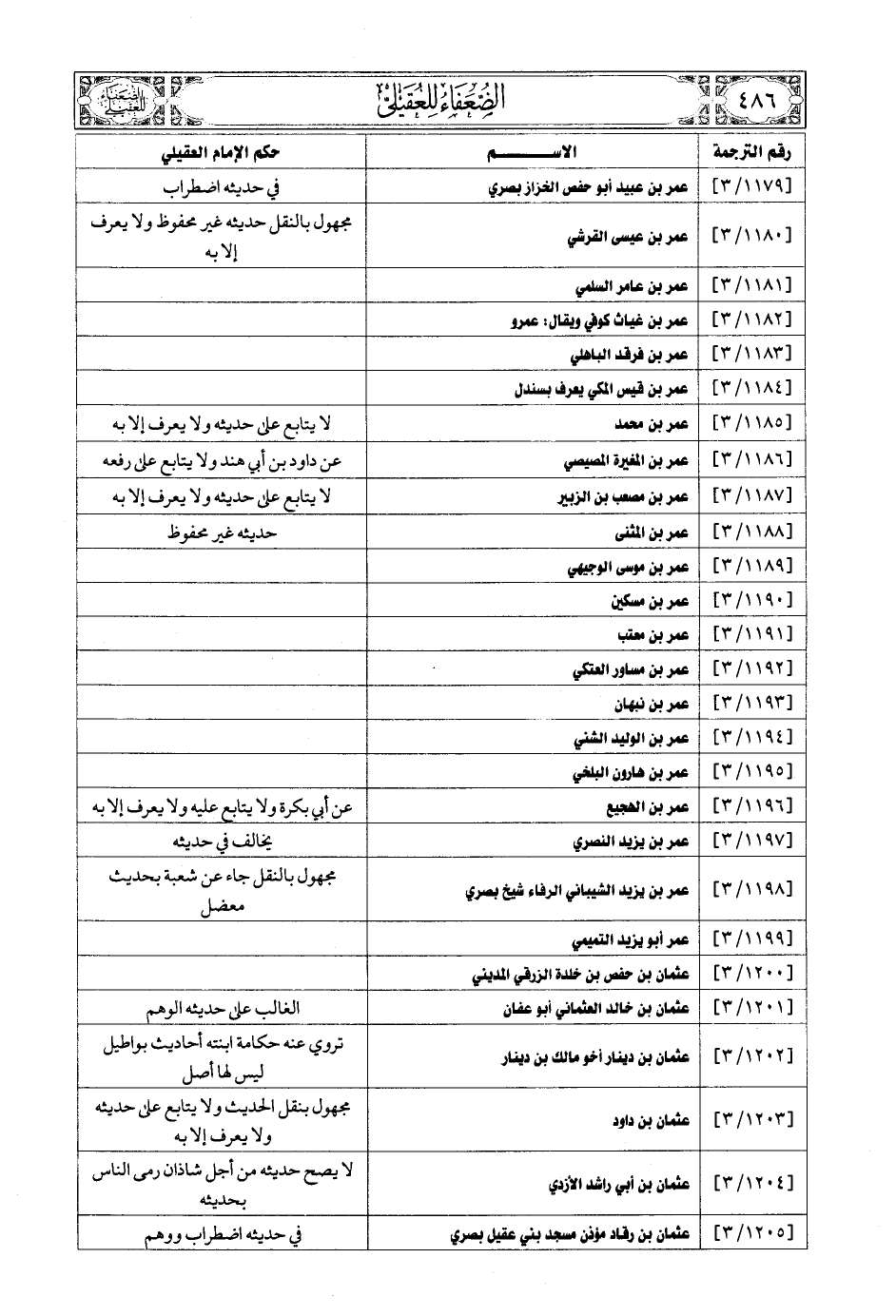 [1201/ 3] ... عثمان بن خالد العثماني أبو عفان ... الغالب على حديثه الوهم